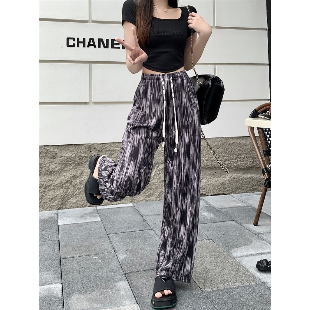 ย้อนยุค กางเกงทรงหลวม แฟชั่นใหม่ กางเกงขาบานลายคลื่น นุ่ม สบายผิว ใส่ลำลอง สินค้าเฉพาะจุด ผ้าไหมน้ำแข็ง