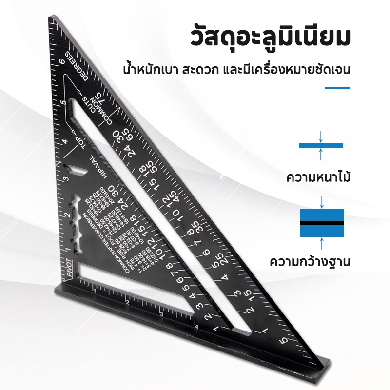 ฉากสามเหลี่ยมอลูมิเนียม ไม้บรรทัดฉากสามเหลี่ยม 7/12 นิ้ว วัดมุม ไม้โปรแทรกเตอร์ สามเหลี่ยมเมตริก เครื่องมือวัดความแม่นยำ