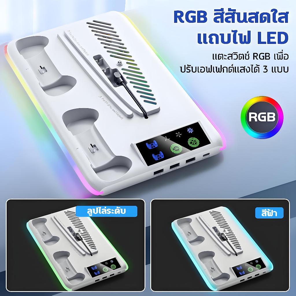 ฐานพัดลมระบายความร้อน PS5/Slim/Pro Digital&Disc อเนกประสงค์ พร้อมแท่นชาร์จคอนโทรลเลอร์ PS5 พร้อมไฟ RGB และที่แขวนหูฟัง