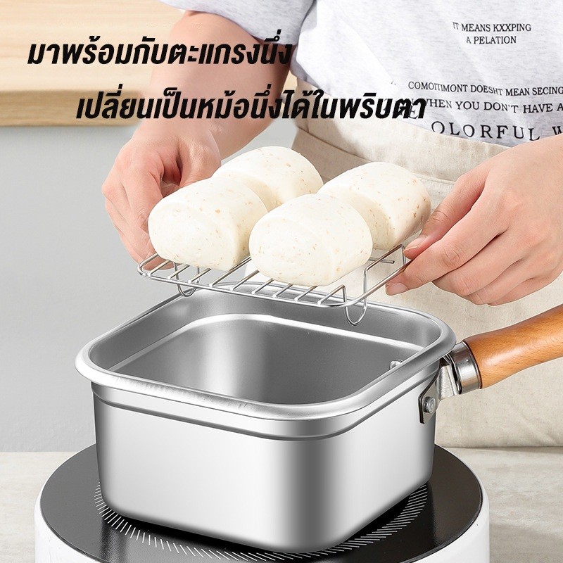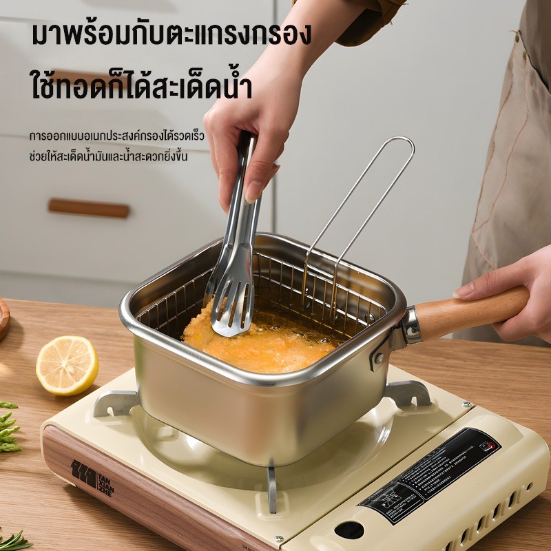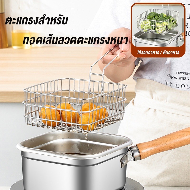 Precook หม้อทอดสแตนเลส หม้อทอดสี่เหลี่ยม กล่องใส่อาหารสแตนเลส พร้อมตะแกรงนึ่ง ตะกร้าทอด ที่คีบอาหาร