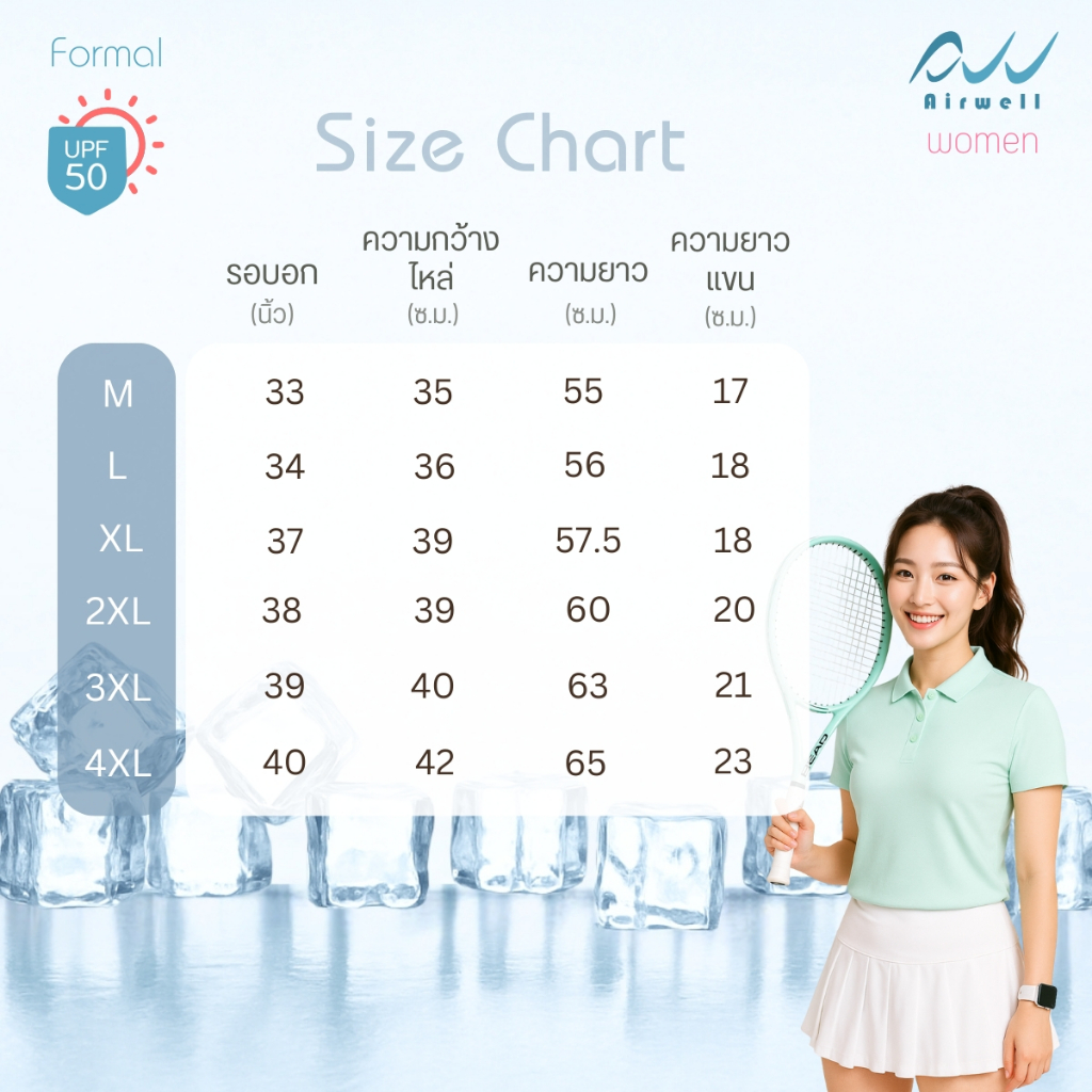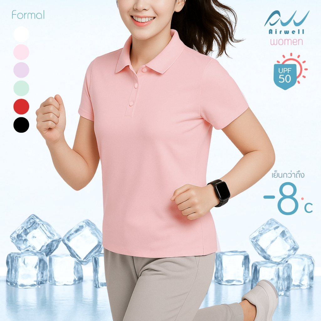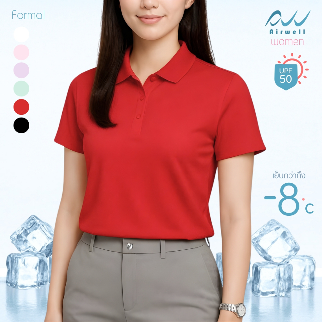 AIRWELL เสื้อยืดคอปกผู้หญิง ติดแอร์ รุ่น Formal ผ้าIce Silk กันUV ใส่สบาย แห้งไว ไม่ต้องรีด เย็นกว่าเสื้อทั่วไปถึง-8 ํc