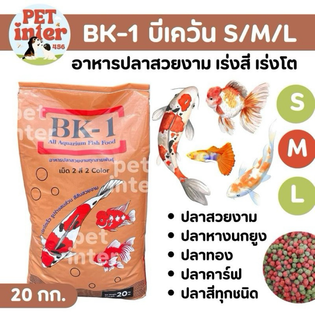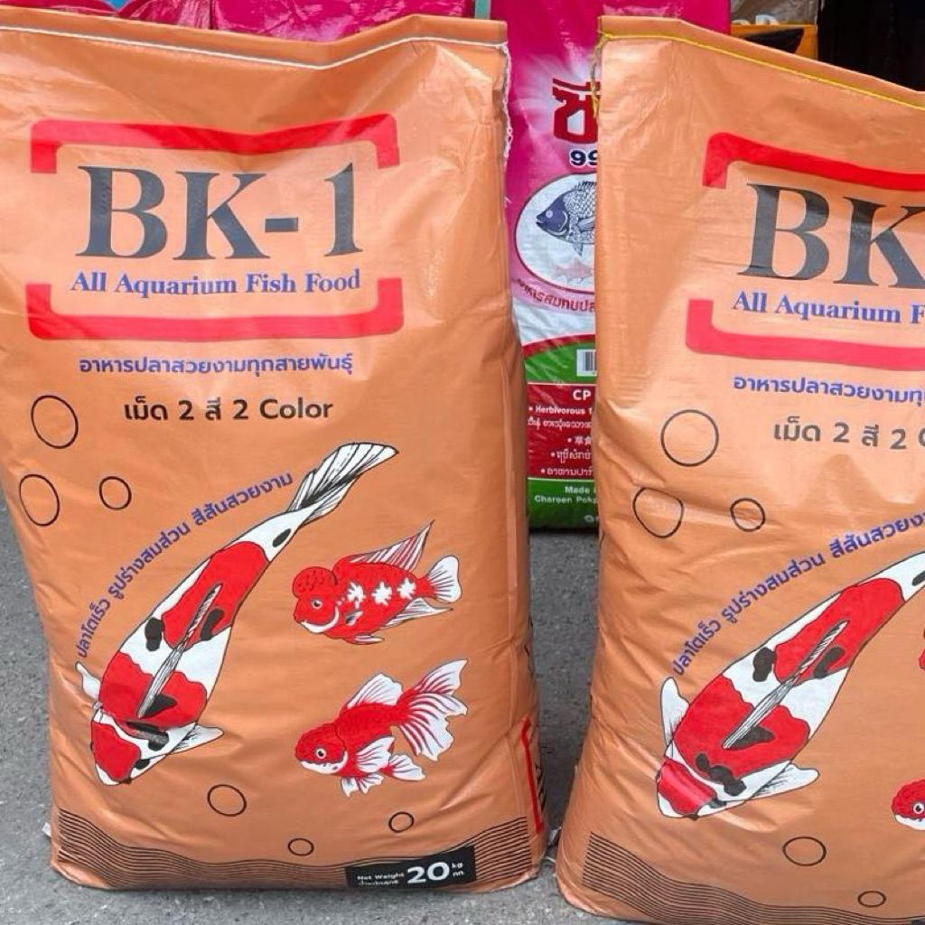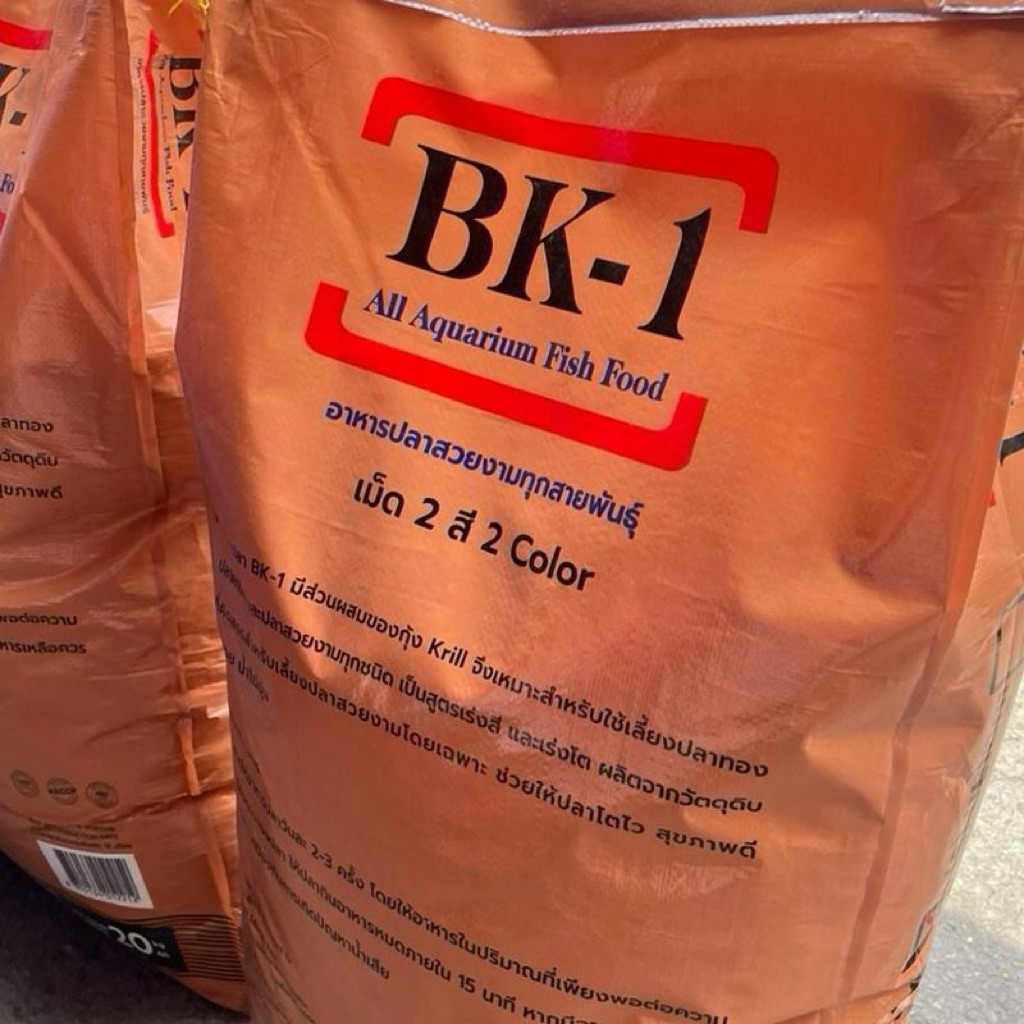 BK-1 บีเควัน อาหารปลาสี 20 กก. เร่งสี เร่งโต น้ำใส สุขภาพดี ผสมสาหร่ายสไปรูริน่า โปรตีน 20% สำหรับปลาสวยงามทุกชนิด