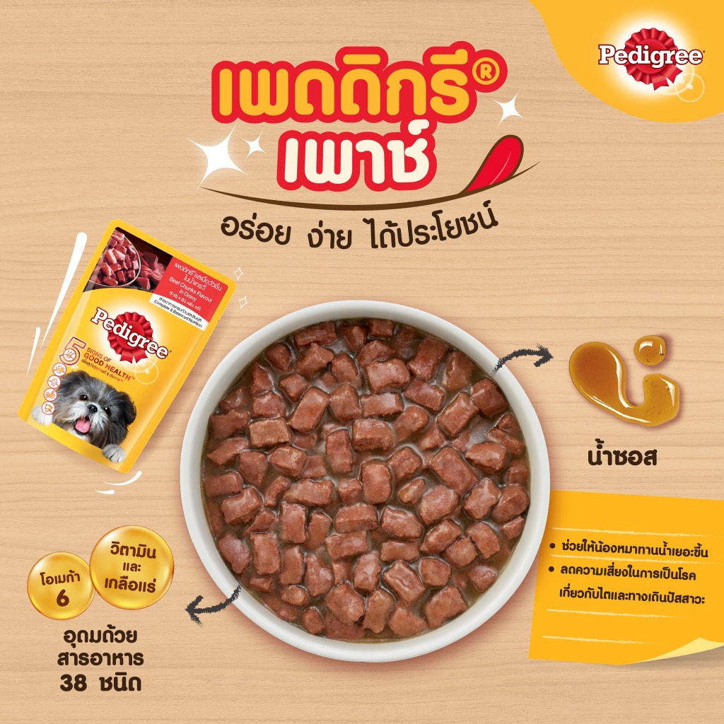 PEDIGREE เพดดิกรี อาหารสุนัขเปียก ในน้ำเกรวี่ สุนัขโตและลูกสุนัข 130 กรัม
