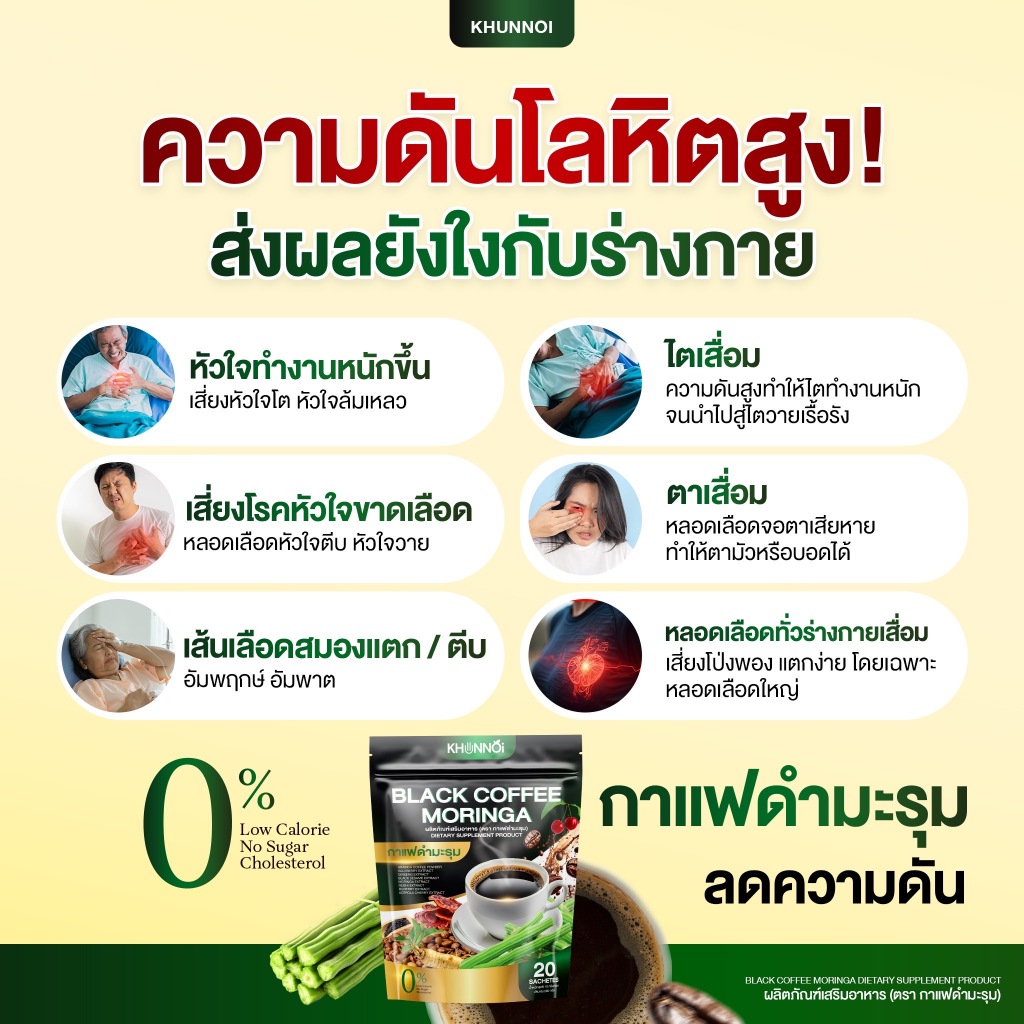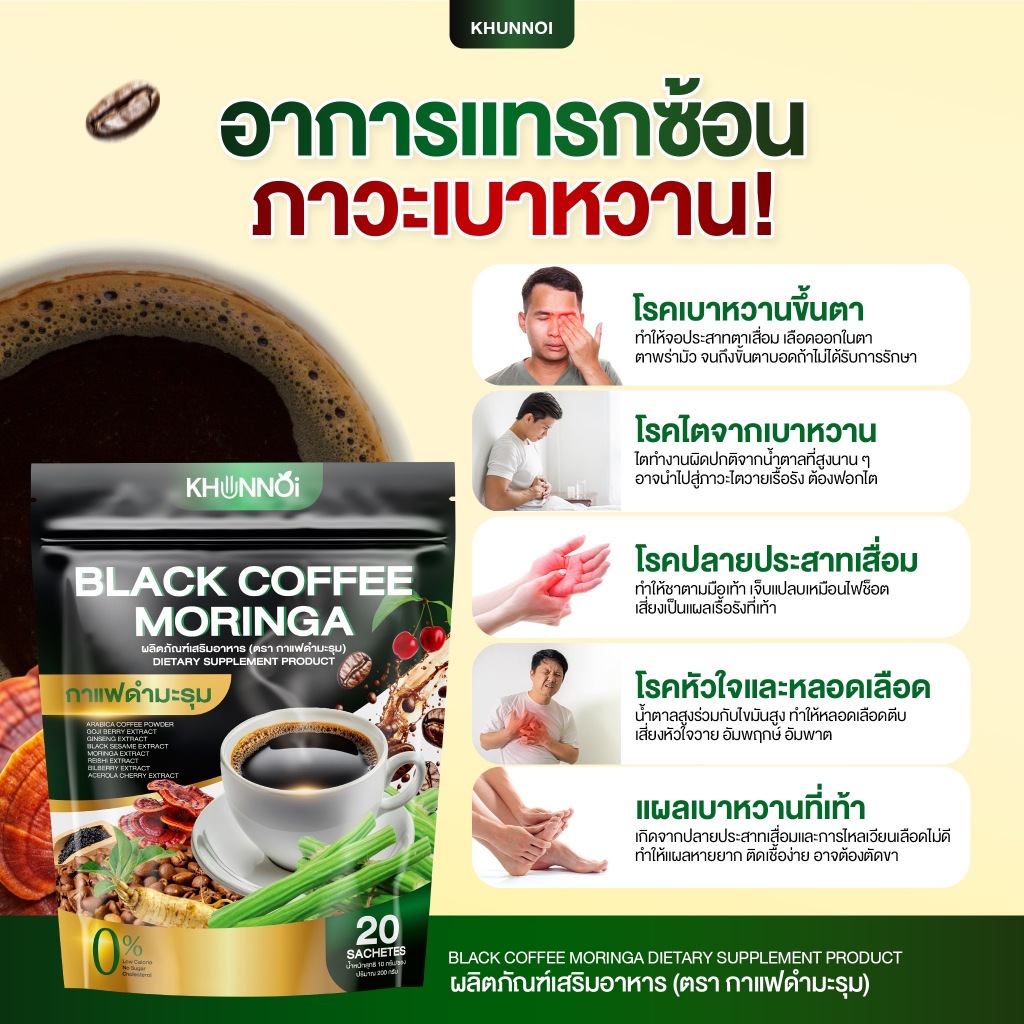 KHUNNOI กาแฟดำมะรุม ตรา คุณน้อย ช่วยควบคุมระดับน้ำตาล ความดัน ไขมัน คอเลสเตอรอล ลดอาการอ่อนเพลีย