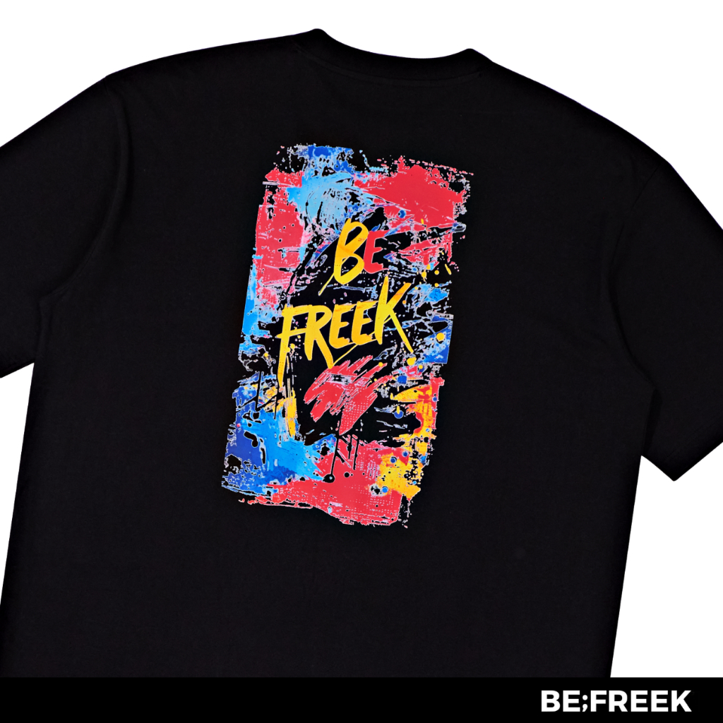 BE;FREEK เสื้อยืดสกรีนลาย SPLASH ทรงใหม่ OVERSIZED สีดำ SPLASH BLACK NEW OVERSIZED T-SHIRT