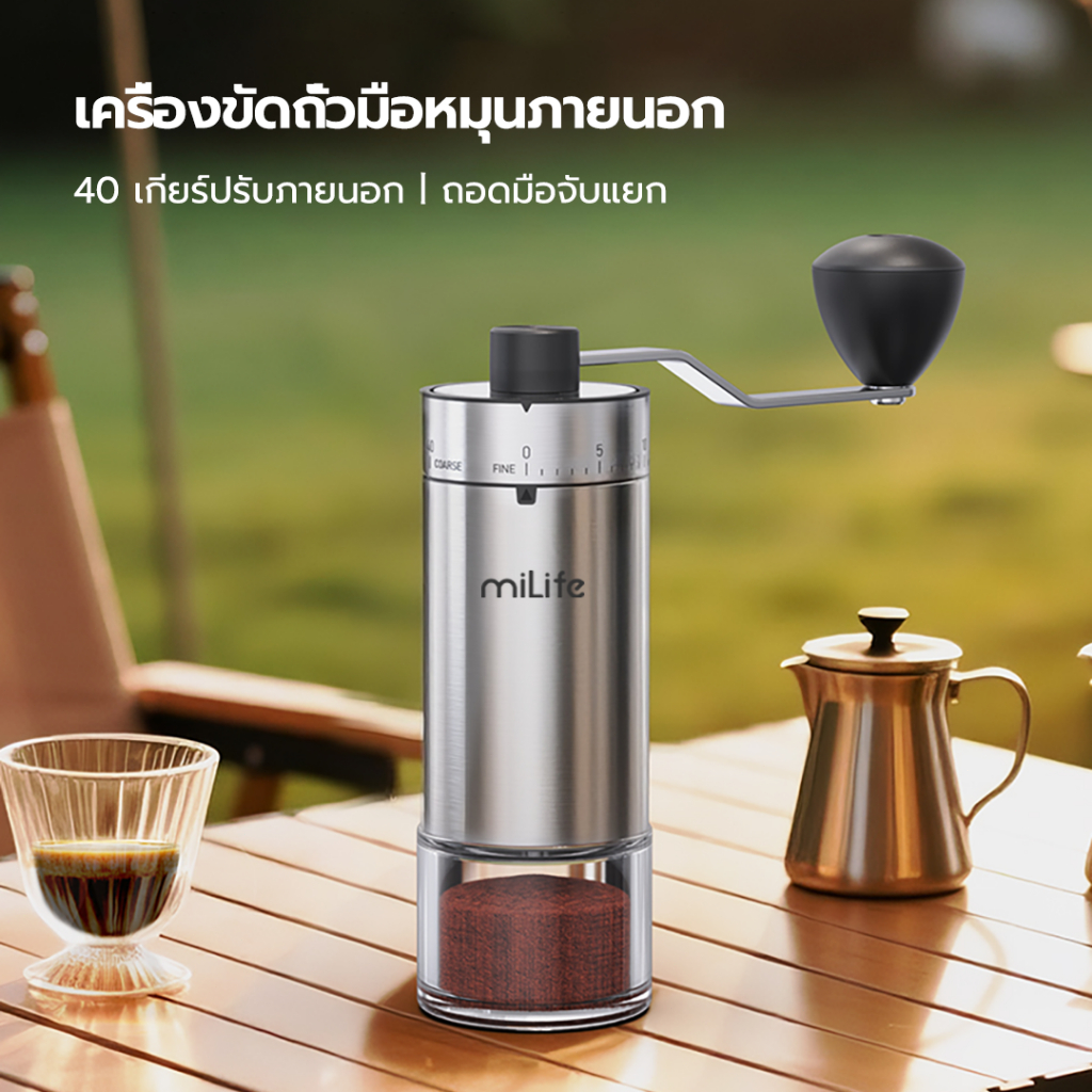 MiLife ที่บดกาแฟ KMDJ-KCT-W2 ปรับได้ 40 ระดับ ตัวเครื่องอะลูมิเนียม แกนบดเซรามิก Coffee Grinder บดกาแฟ
