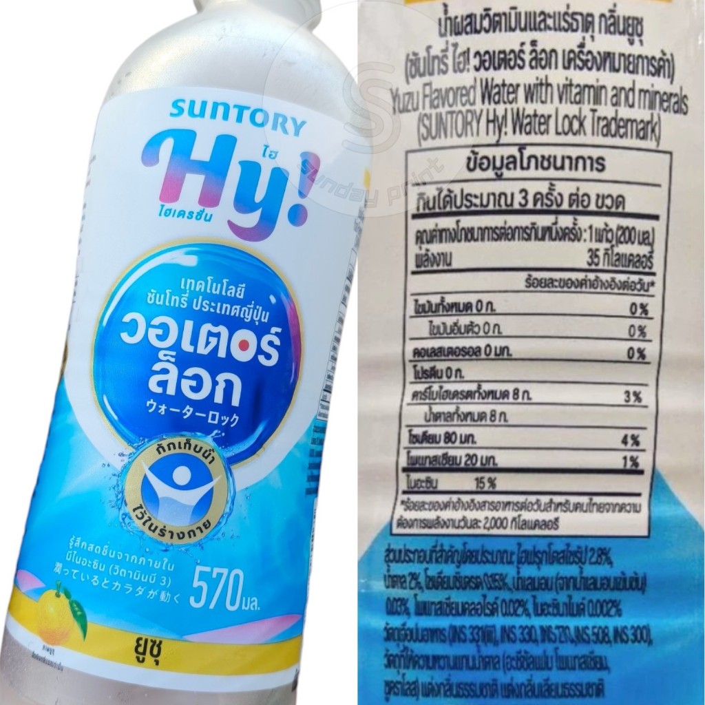 [ชุด6ขวด] Suntory Hy ! WATER LOCK ซันโทรี่ ไฮ วอเตอร์ ล็อก เครื่องดื่ม กลิ่นยูซุ ขนาด 570 มล. น้ำ วิตามิน เกลือแร่ YUZU