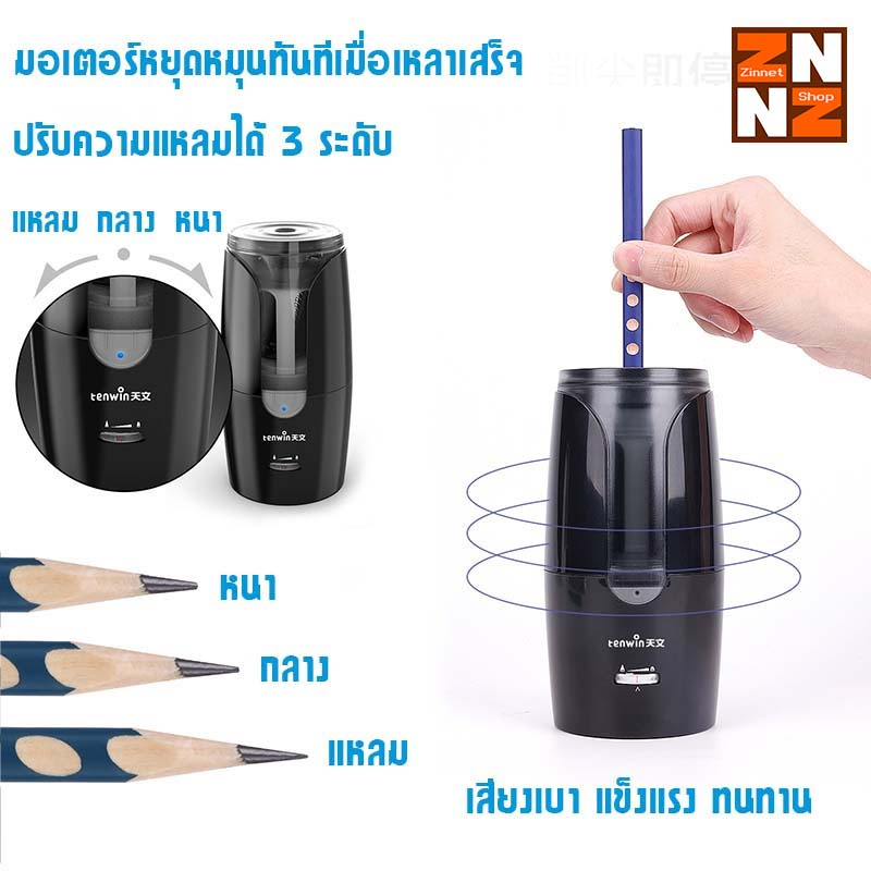 กบเหลาดินสอไฟฟ้า อัตโนมัติ tenwin รุ่น No.8028 (ชาร์จ USB)