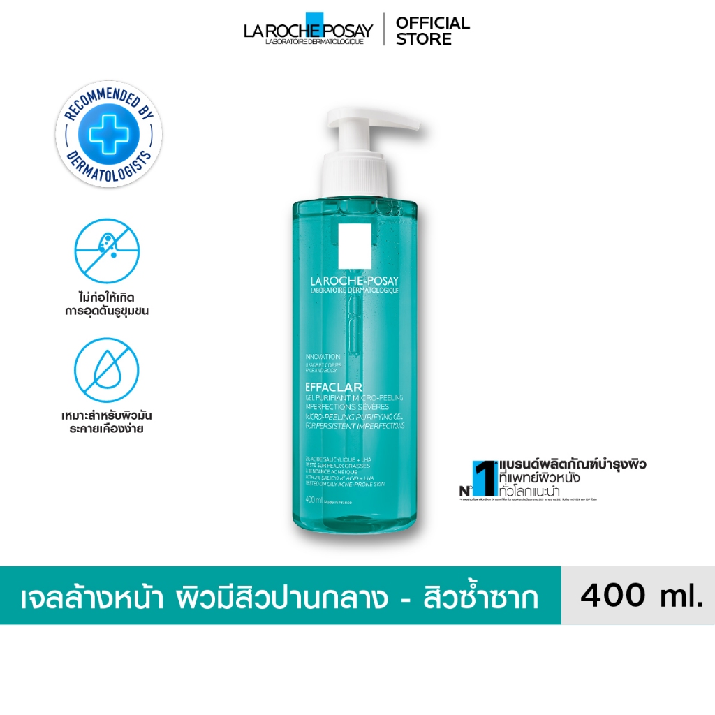 ลา โรช-โพเซย์ La Roche-Posay Effaclar Micro-Peeling Gel เจลทำความสะอาดผิว สำหรับผิวมันเป็นสิว 400ml.(โฟมล้างหน้า ลดสิว)