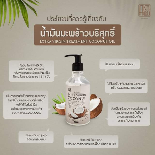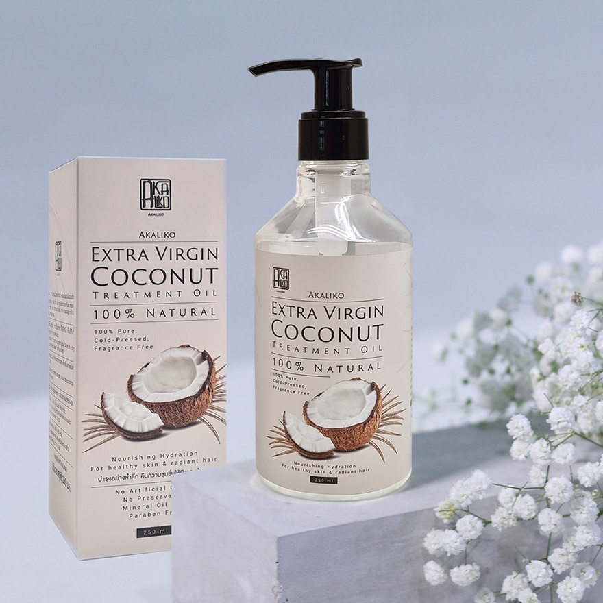 AKALIKO Extra Virgin Treatment Coconut Oil 250 ml. อะกาลิโก น้ำมันมะพร้าว บำรุงผิวหน้า ผิวกาย ล้างเครื่องสำอาง ธรรมชาติ