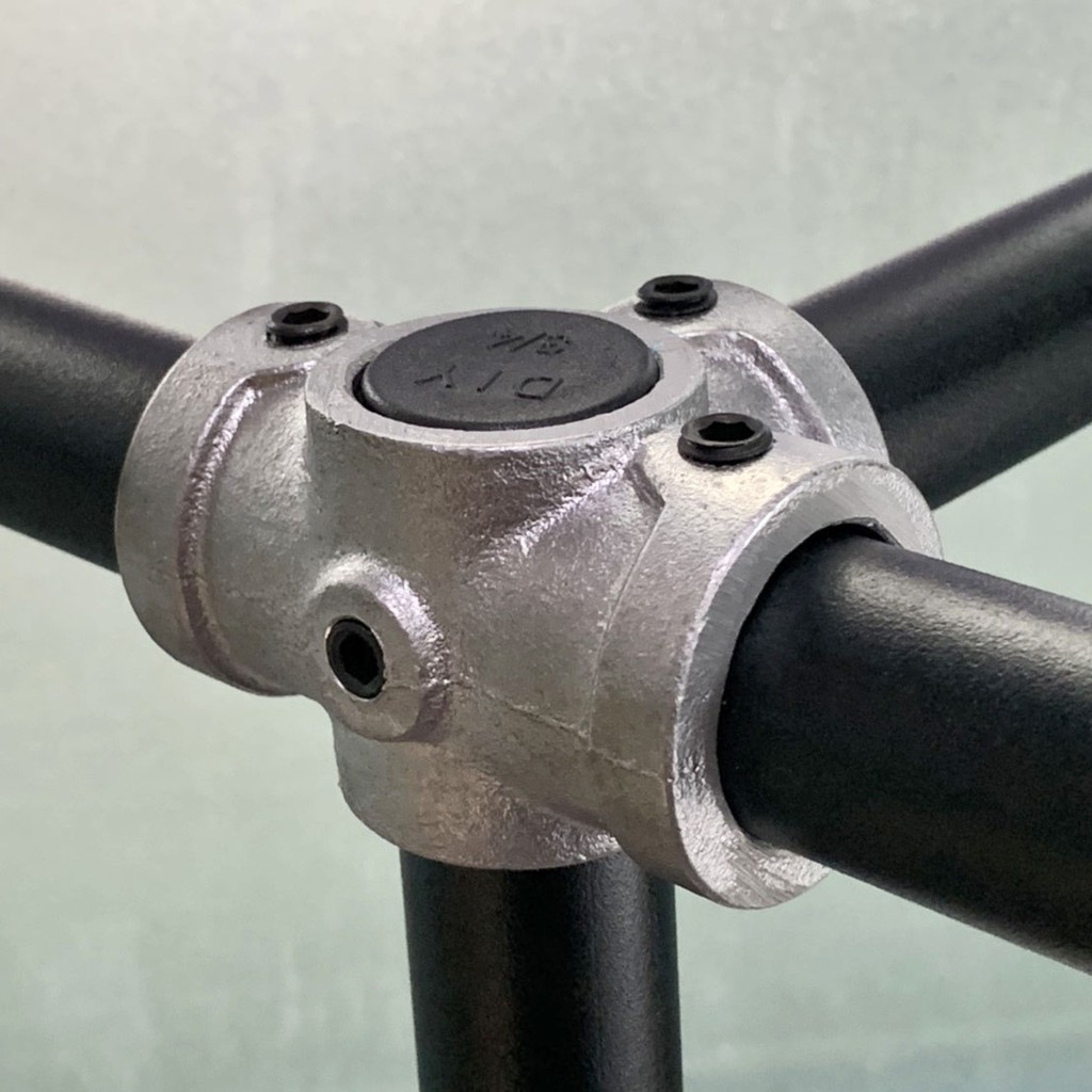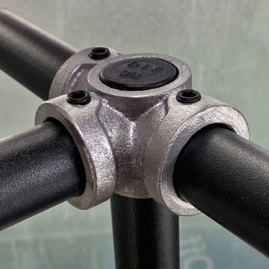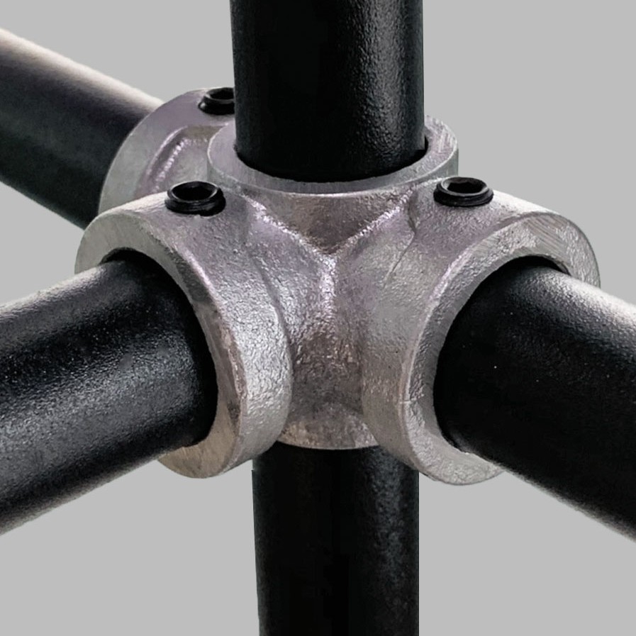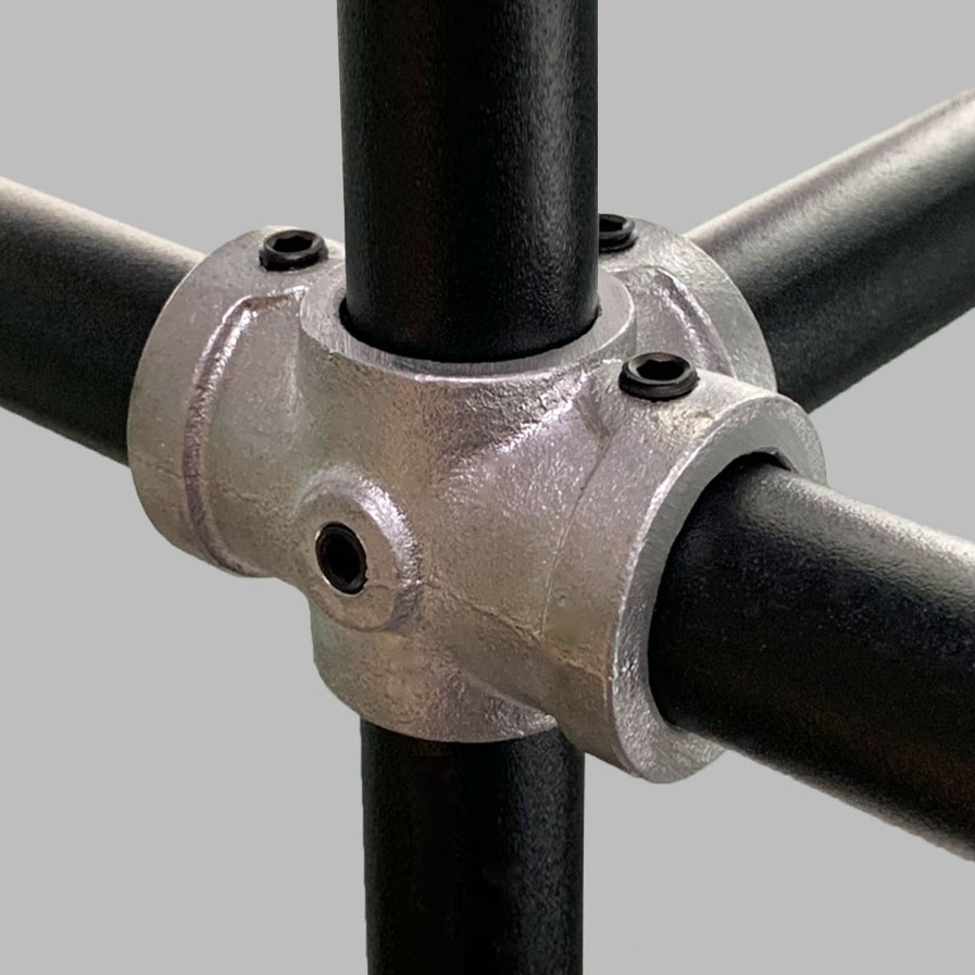 ข้อต่อห้าทางมุมอลูมิเนียม (รูสวม 26 มม.) (สีเงิน) แบบไม่ต้องต๊าปเกลียว