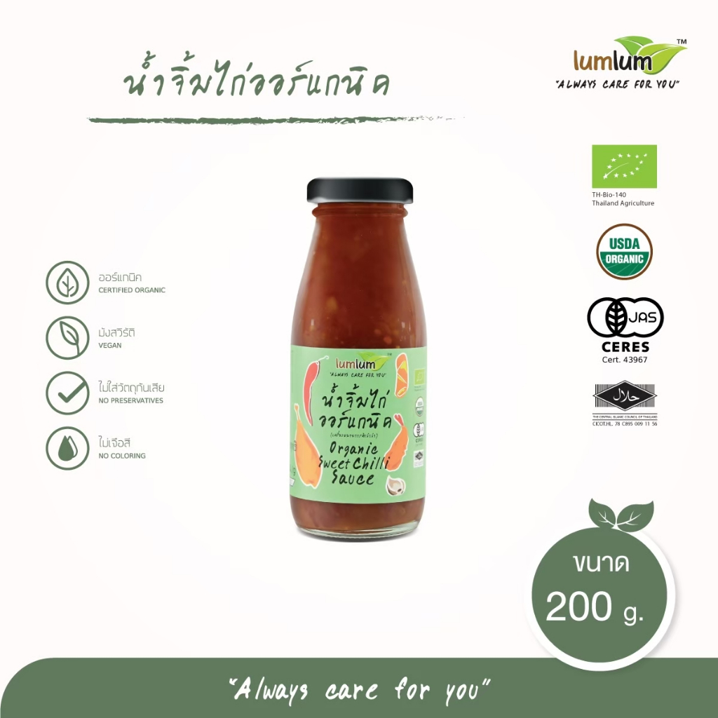 LUMLUM Organic Sweet Chilli Sauce น้ำจิ้มไก่ ซอสปรุงรส ออร์แกนิค 200g.