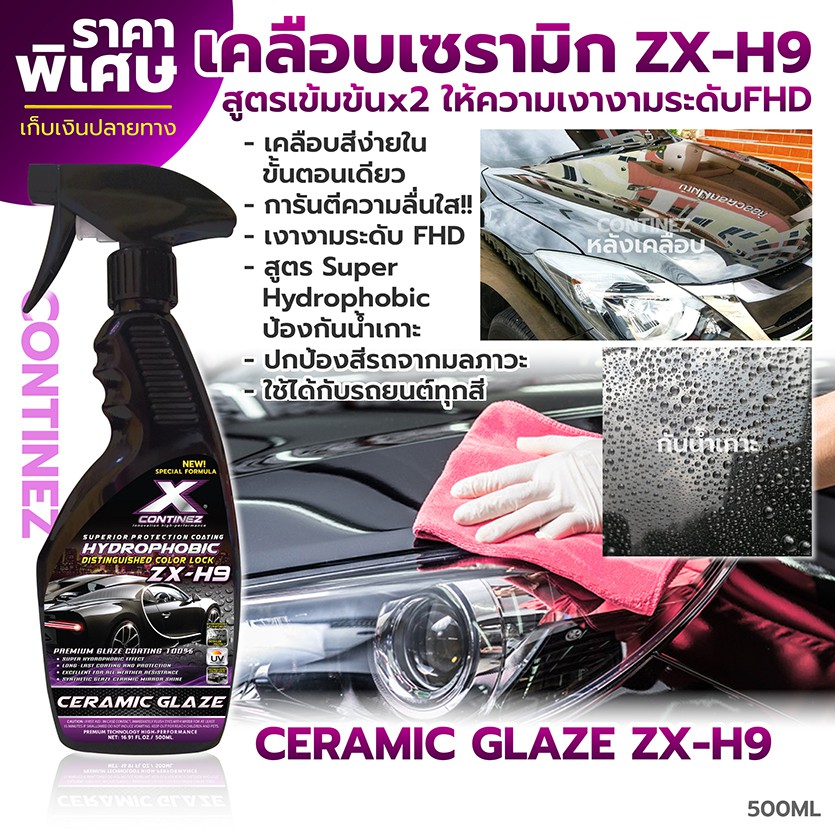 เซรามิกแท้! Continez ZX-H9 สเปรย์เคลือบสี สูตรเซรามิกเข้มข้น เงางาม กันรอย กันUV น้ำไม่เกาะ 500ml