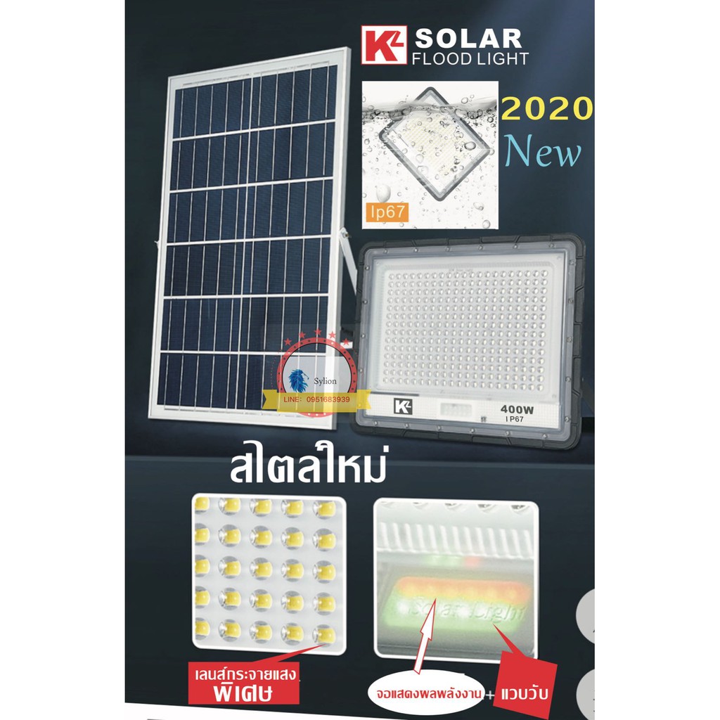ของแท้ 100% 400W 200w 100w 60wไฟโซล่าเซลล์ ไสปอตไลท์ Solar LED โซล่าเซลล์ แสงสีขาว ไฟติดผนัง โคมไฟโซลาร์เซลล์