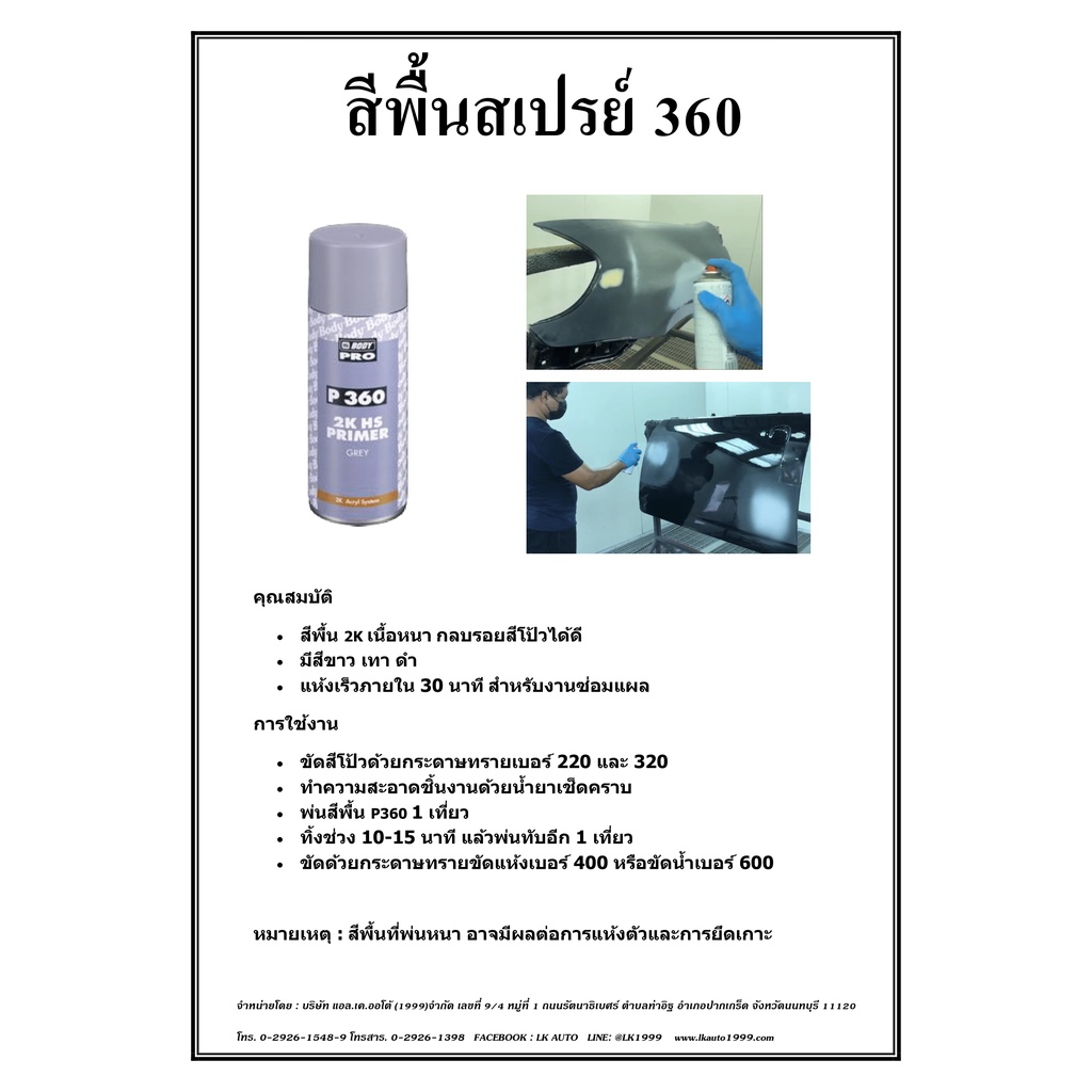 สีรองพื้น 2K สีสเปรย์รองพื้น HB BODY P360 ขนาด 400 มล.