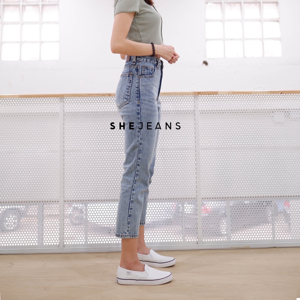 กางเกงยีนส์เอวสูงกระบอกเล็ก คลาสสิค