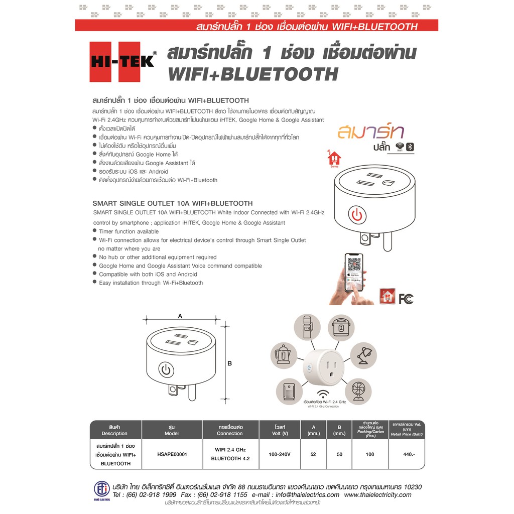 HI-TEK SMART ปลั๊ก 1 ช่อง WIFI+BT