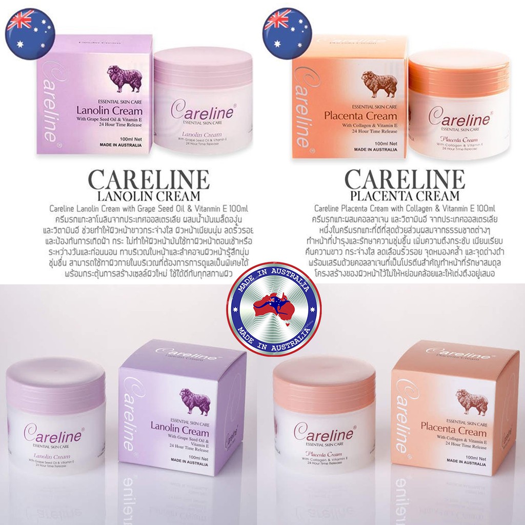 Careline ครีมรกแกะแท้ Lanolin & Placenta Cream ครีมรกแกะออสเตรเลียแท้ ( แบบกระปุก และ แบบหลอด 100ml.)