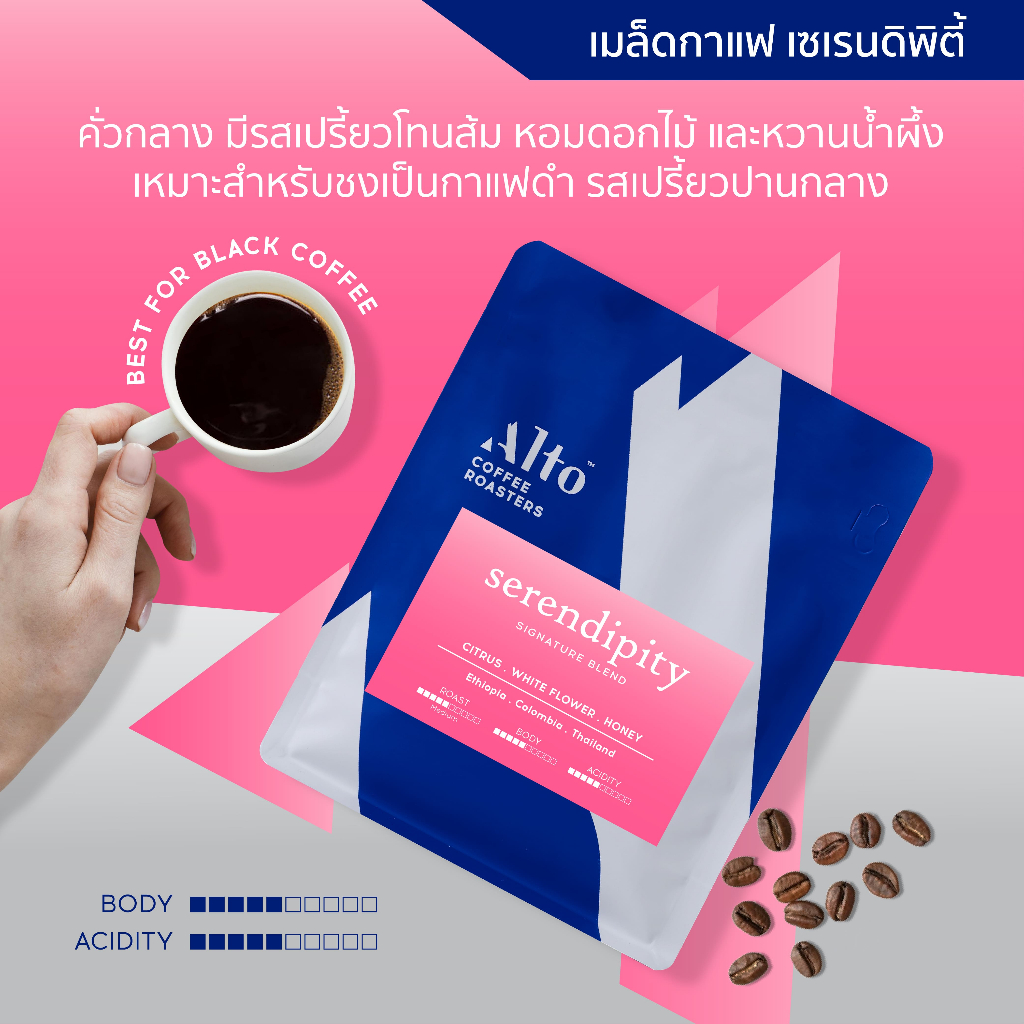 Alto Coffee เมล็ดกาแฟ คั่วกลาง Serendipity Blend (200g)