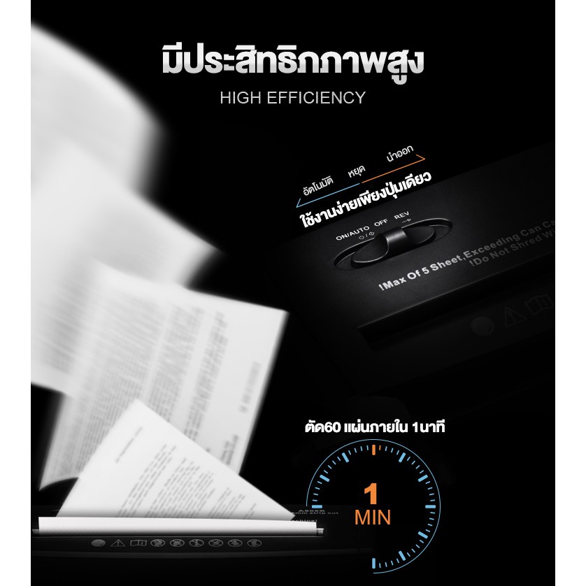 MBK เครื่องทำลายเอกสาร officeแบบไฟฟ้า สามารถทำลายกระดาษได้พร้อมกันหลายแผ่น ความจุ13 ลิตร-S606B