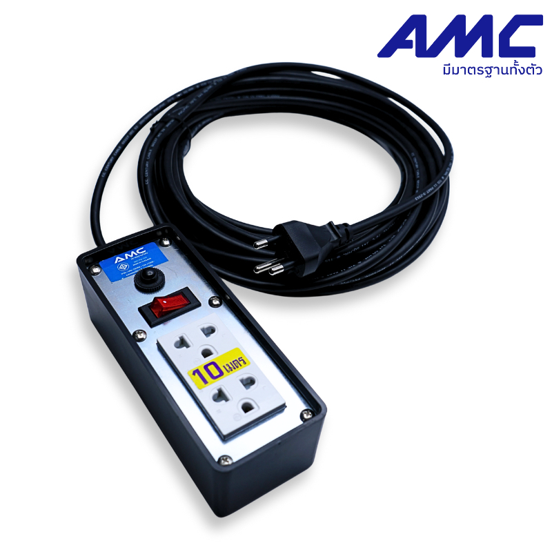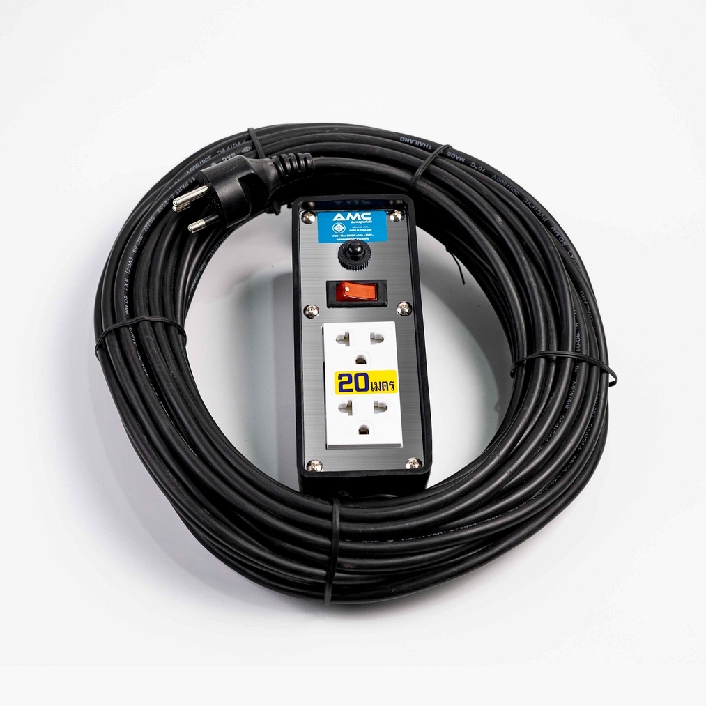 AMC ปลั๊กบล็อคยาง มาตราฐาน มอก. หน้าเหล็ก 2 ช่อง ยาว 3-30 เมตร พร้อมสวิตช์ ปลั๊กไฟ (รับประกัน 2 ปี) C12XX