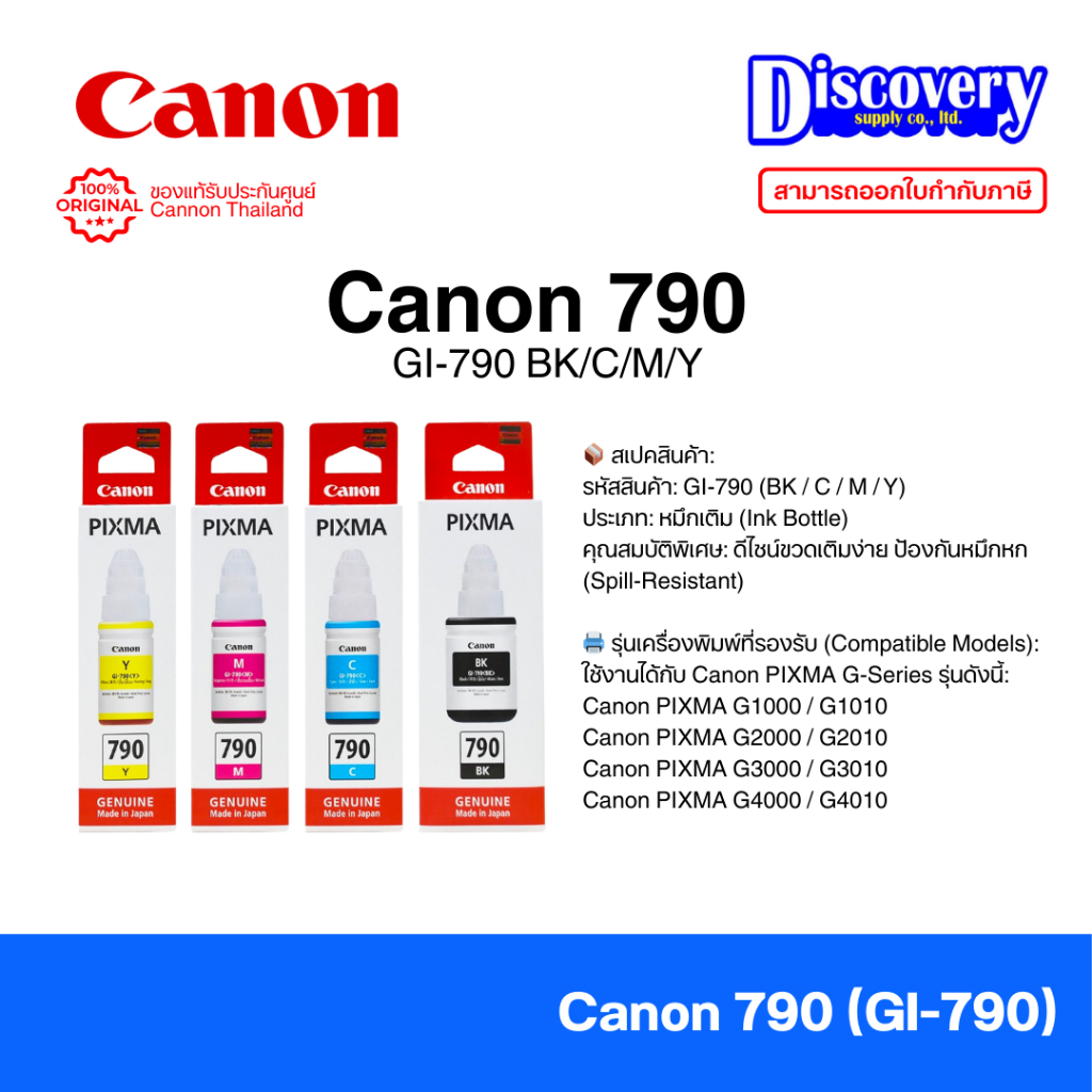 Canon GI-790 Ink Bottle หมึกเติมแท้ (เลือกสี) | สำหรับ G1000 / G2000 / G3000 / G4000 Series