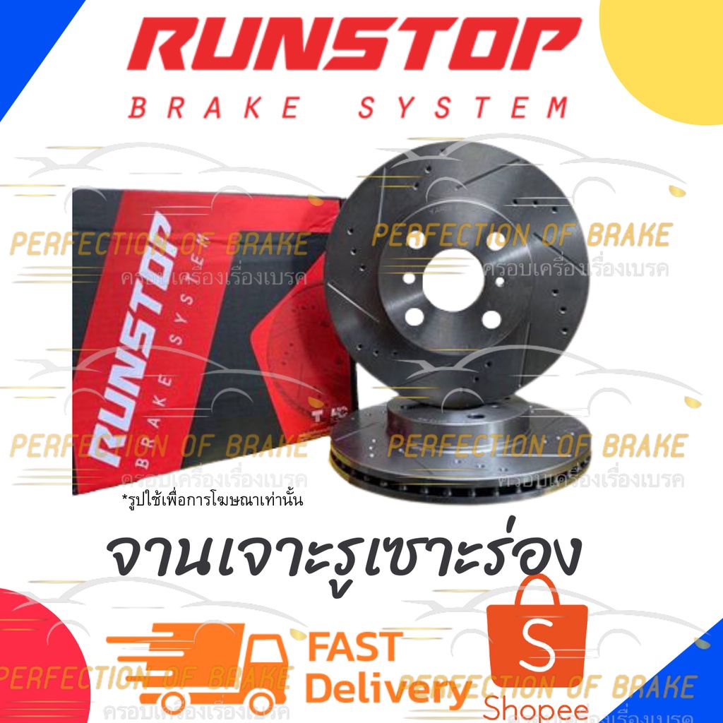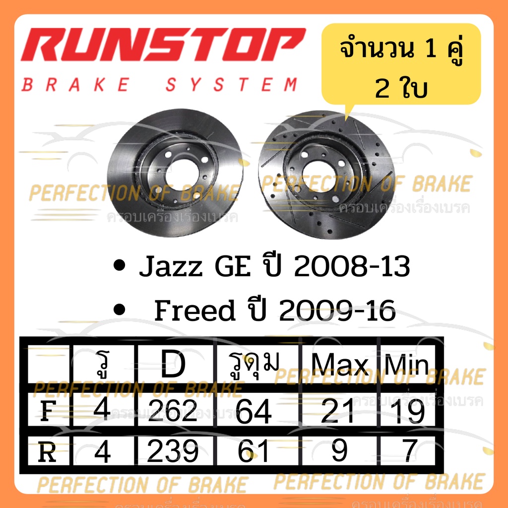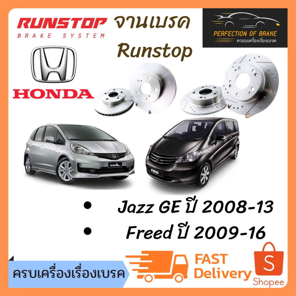 จานเบรคหน้า-หลัง Runstop Honda Jazz แจ๊ส GE ปี 2008-13 / Freed ปี 2009-16 จานขนาดเดิม Slot Standard ราคาต่อคู่