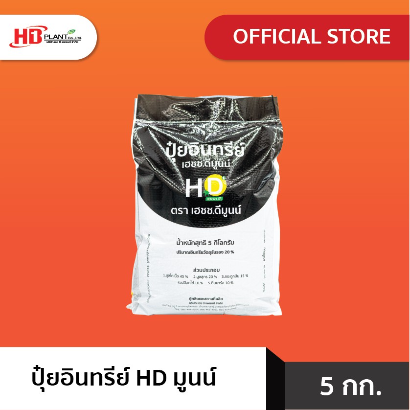 ปุ๋ยอินทรีย์ HD มูนน์ 5 กิโลกรัม ( จำกัดการซื้อสินค้า ออร์เดอร์ละ 2 ถุง เพื่อสะดวกกับการขนส่งค่ะ )
