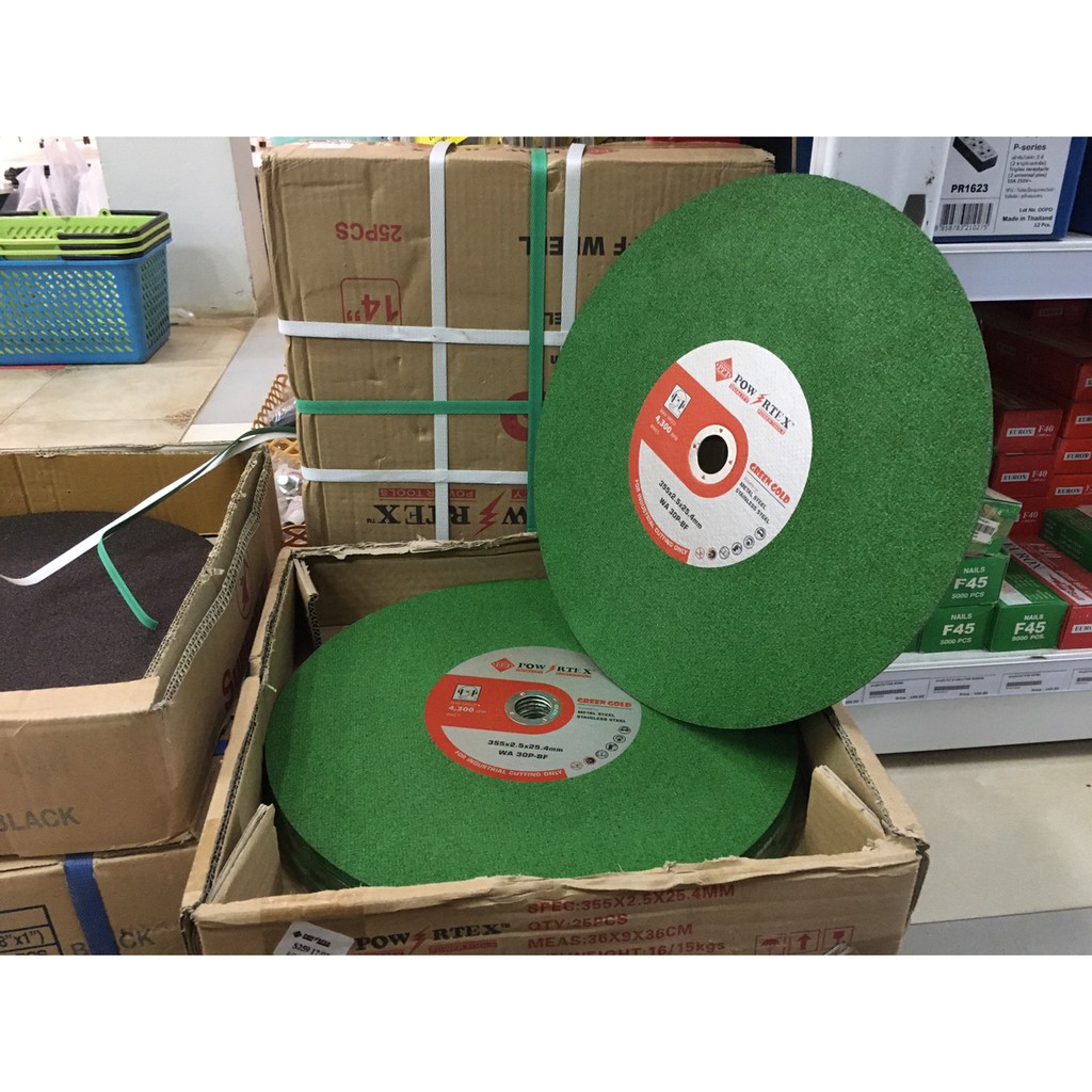 ใบตัดเหล็ก ตัดสแตนเลส 14" POWERTEX ใบคม ตัดดี (แพค10ใบ) (ยกกล่อง 25 ใบ)