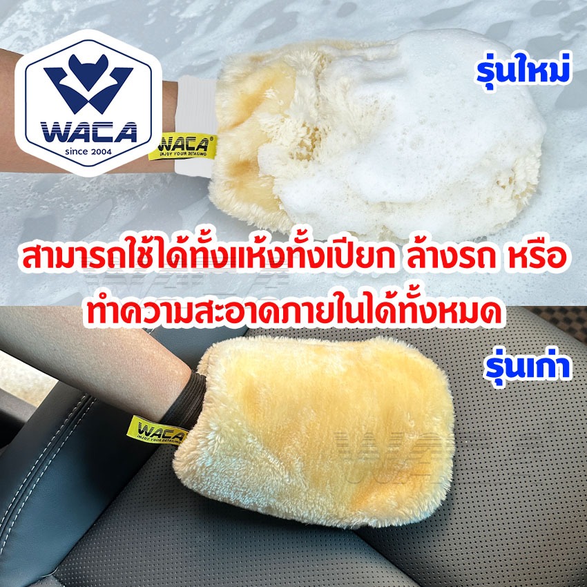 ส่งด่วน WACA ถุงมือล้างรถเต็มมือ 2ด้าน รุ่น 60 ถุงมือขนแกะ หนากว่าเดิม ถุงมือขนแกะ ซับในนุ่ม