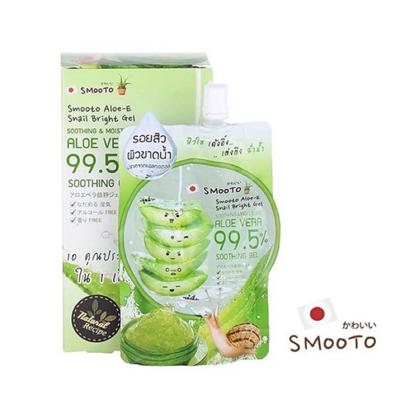 Smooto Soothing & Moisture Aloe Vera 99.5% Soothing Gel สมูทโตะ อโล-อี สเนล ไบรท์ เจล**1 กล่องมี 4ซอง**