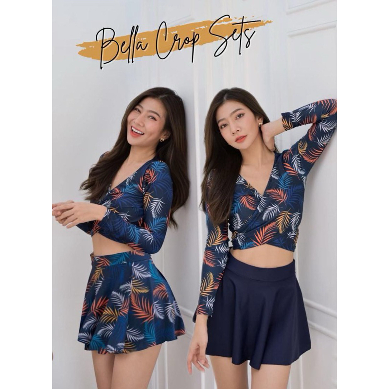 ชุดว่ายน้ำแขนยาว แบบครอป พร้อมกระโปรง รุ่น bella