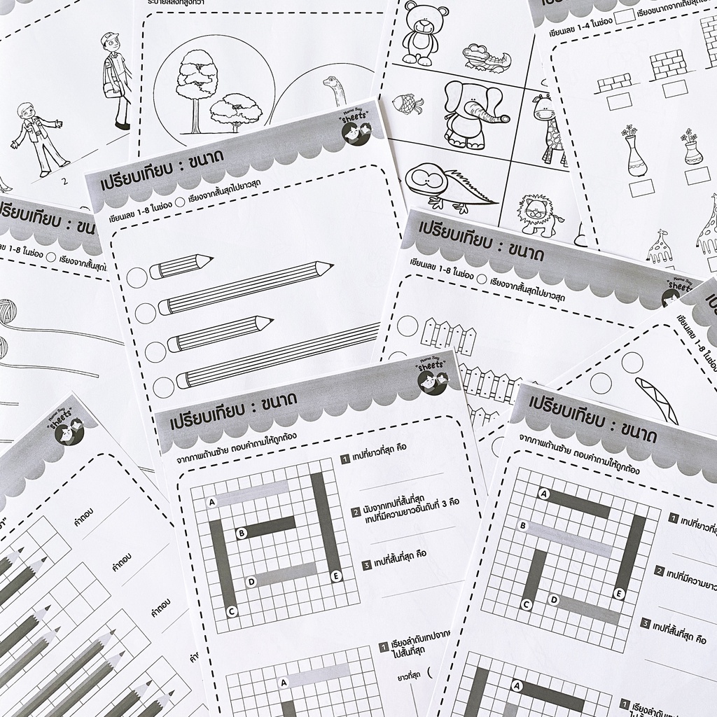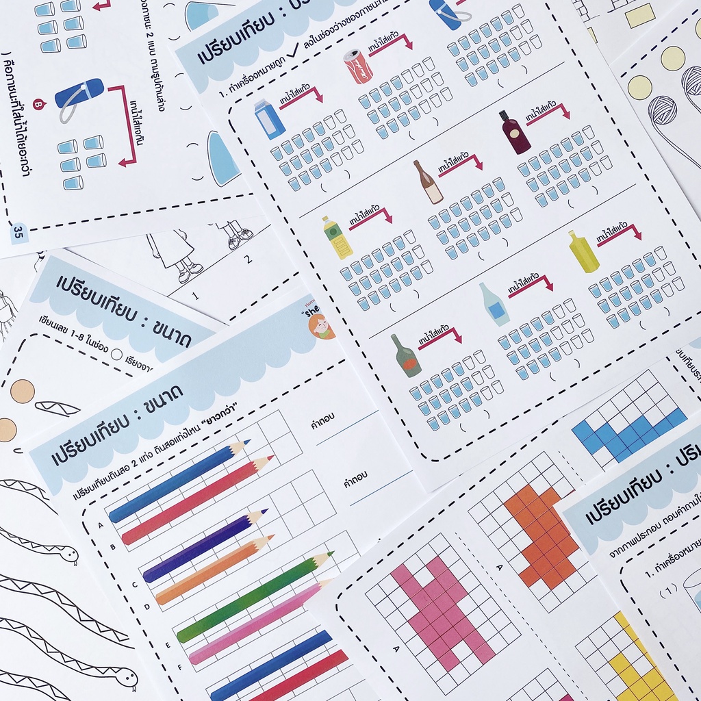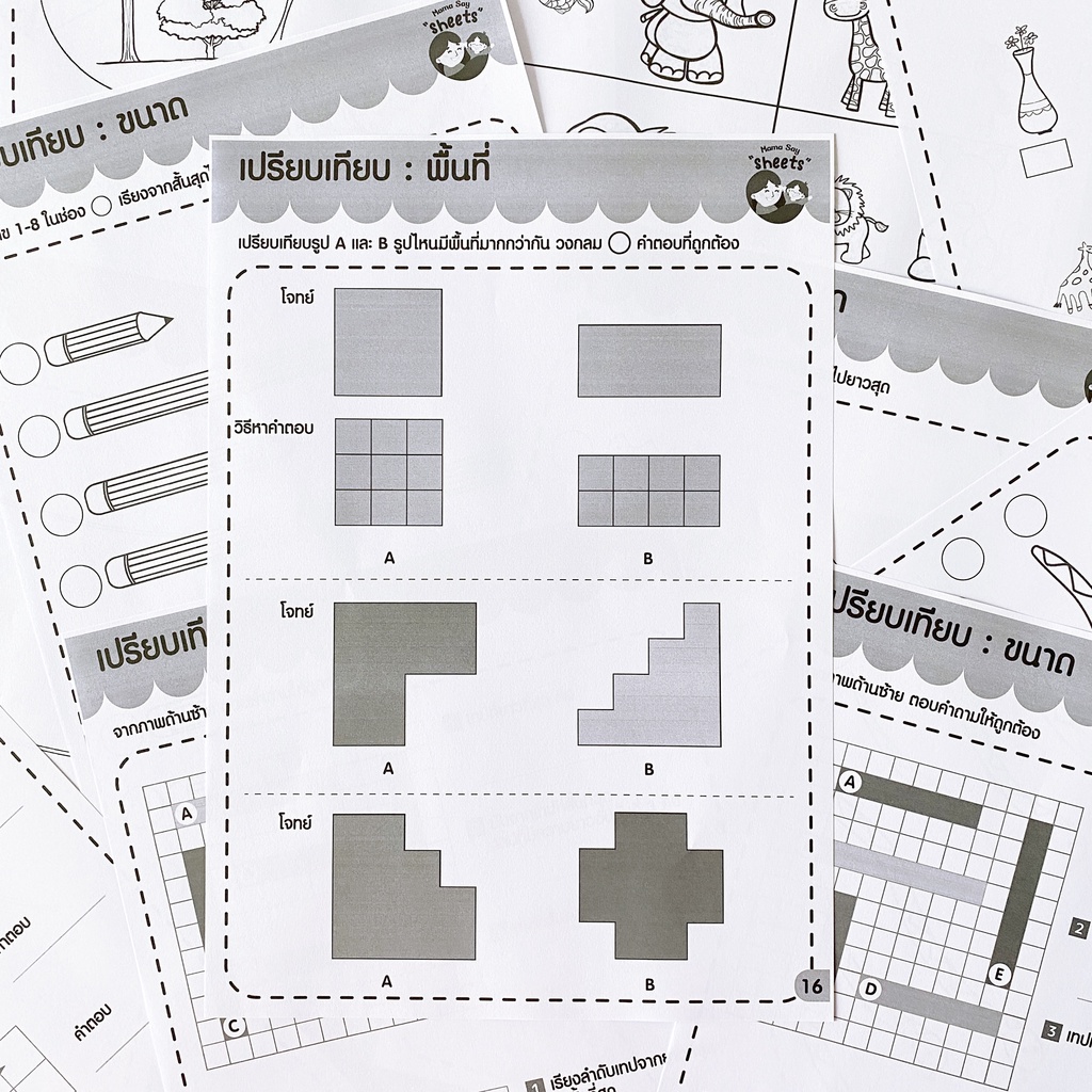 แบบฝึกหัด [[ ความยาว พื้นที่ ปริมาตร ]] ชีท เกม กิจกรรม สำหรับเด็ก (mama say sheets) Mebestbook