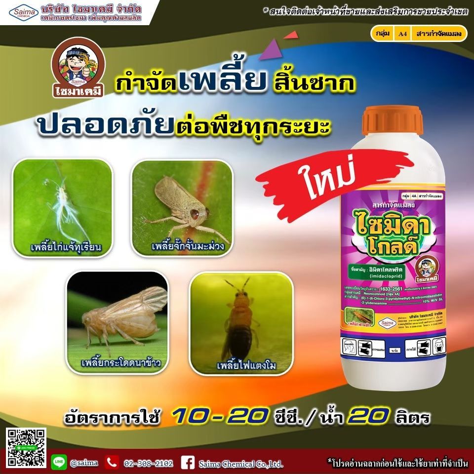 // ขายยกลัง // ไซมิดาโกลด์ (1 ลิตร) อิมิดาคลอพริด (Imidacloprid) น้ำ 10% กำจัดเพลี้ยไฟ เพลี้ยกระโดด