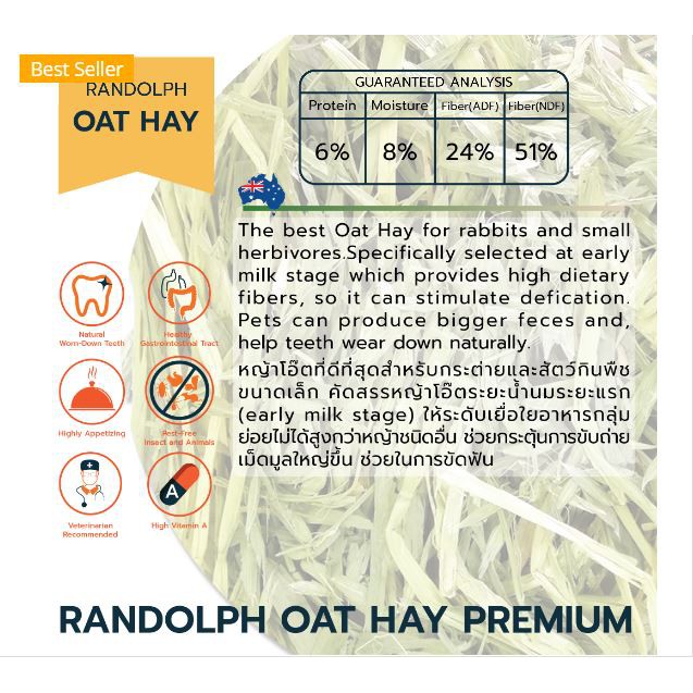 Randolph OAT Hay Super Premium หญ้าโอ๊ตซุปเปอร์พรีเมี่ยมจากออสเตรเลีย (500กรัม)
