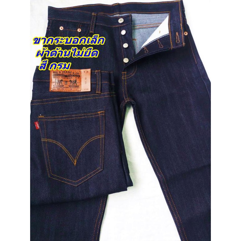 กางเกงยีนส์ชาย ขากระบอก ผ้าด้านผ้าดิบไม่ยืด และ กางเกงยีนส์ผู้ชายทรงขากระบอกเล็กผ้ายืด เป้าแบบกระดุม มีไซร์ 28--40