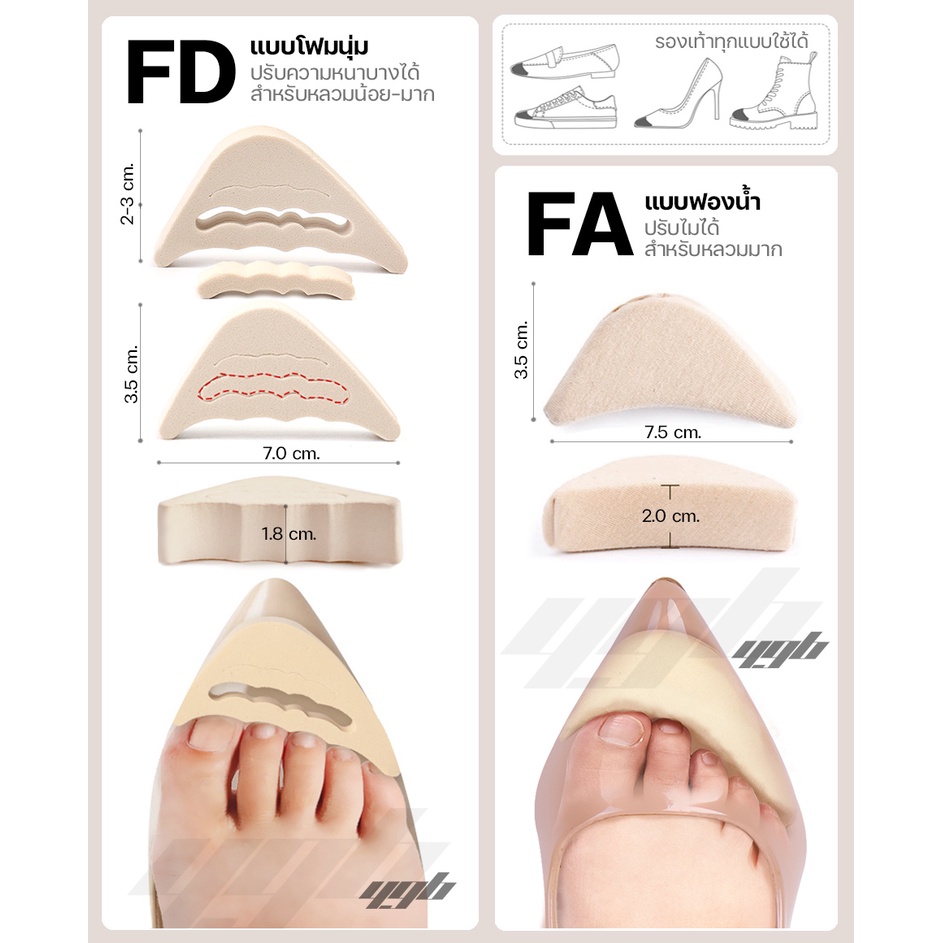 YGB แผ่นฟองน้ำเสริมปลายเท้า โฟมนุ่มเสริมปลายเท้า (1คู่) โฟมแก้รองเท้าหลวม กันรองเท้ากัด
