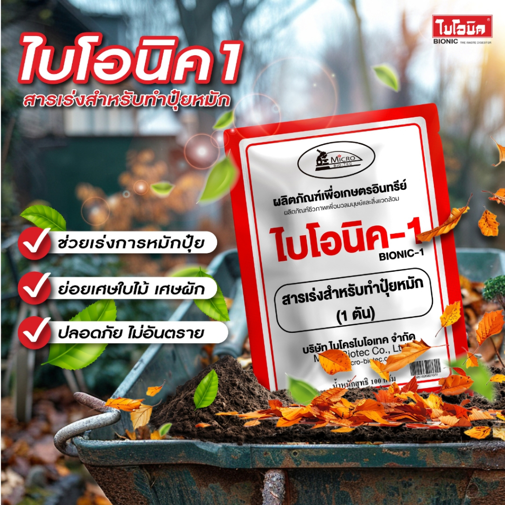 ไบโอนิค 1 (พด.1) สารเร่งทำปุ๋ยหมัก บำรุงดิน บำรุงต้นไม้ ย่อยสลายใบไม้ ผงจุลินทรีย์เร่งทำปุ๋ย 100กรัม