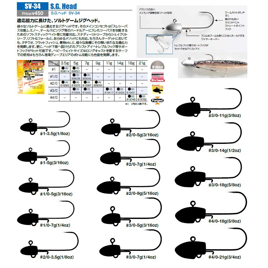 เบ็ดตกปลาหัวจิ๊กดีคอยล์ Decoy SV-34 S.G.Head พร้อมห่วงใส่ สามทางได้ เบ็ดคม ๆ ทนน้ำเค็ม