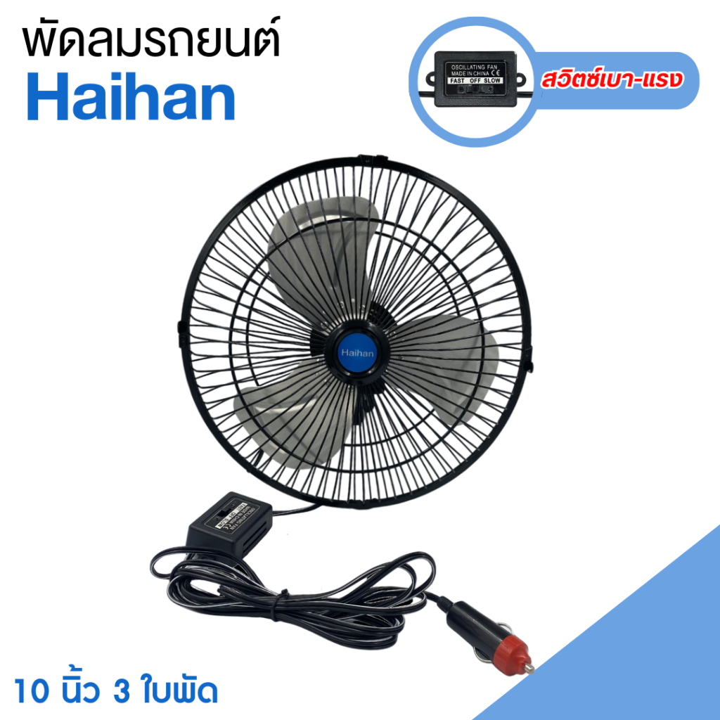 พัดติดรถยนต์ Haihan 10 นิ้ว 3 ใบพัด ไฟรถ DC- 12V/24V พัดลมติดรถยนต์