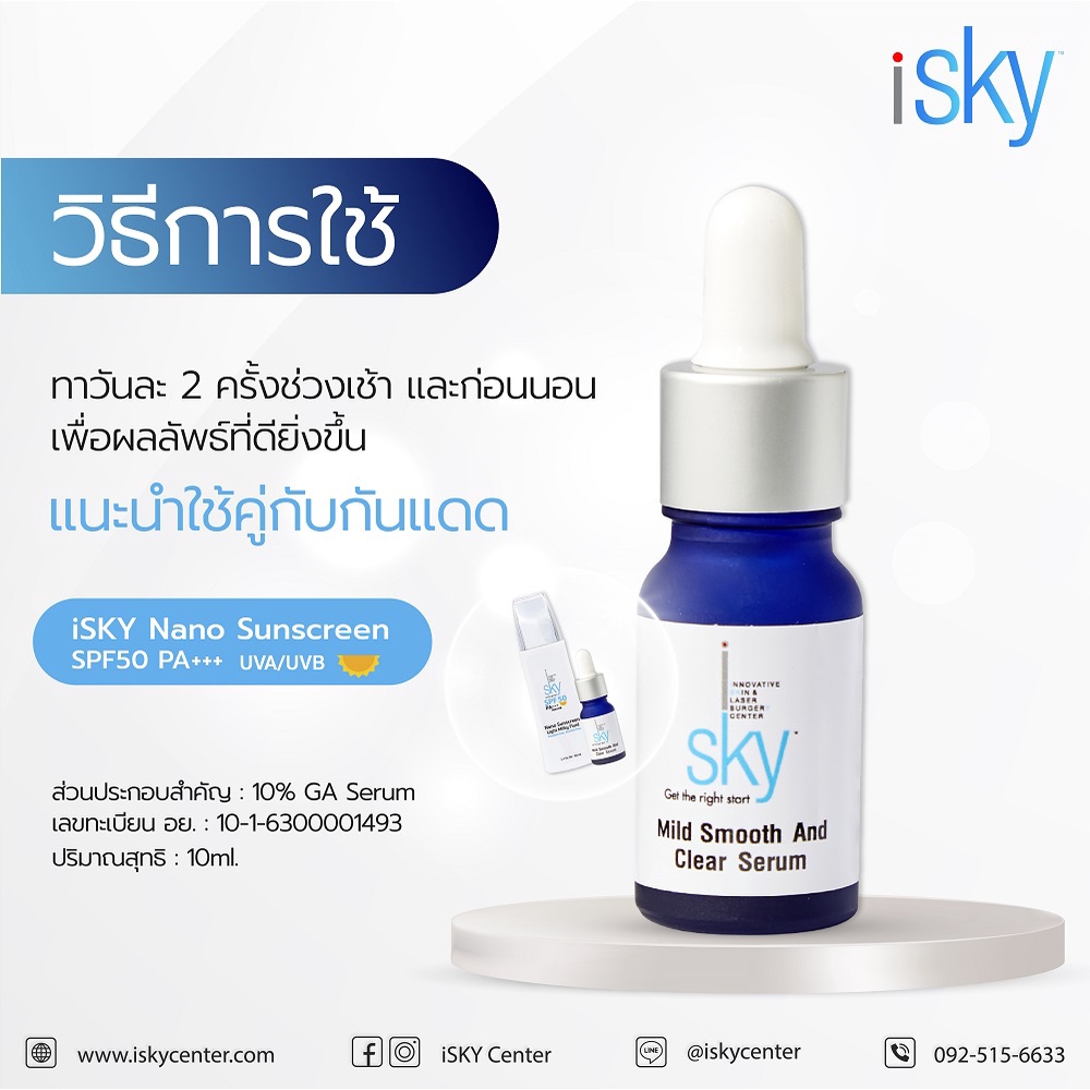 iSKY Intensive Smooth and Clear Serum 15ml. | เซรัม สิว ผิวกระจ่างใส ลดรอยดำ รอยแดงจากสิว ลบเลือนฝ้า จุดด่างดำให้จางลง 1