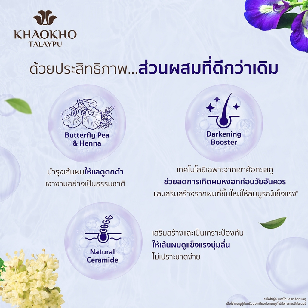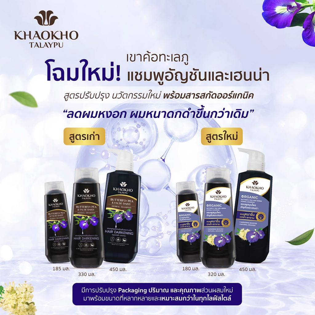 Khaokho Talaypu เขาค้อทะเลภู แชมพู สูตรอัญชันและเฮนน่า ช่วยลดผมหงอก (320 มล.)