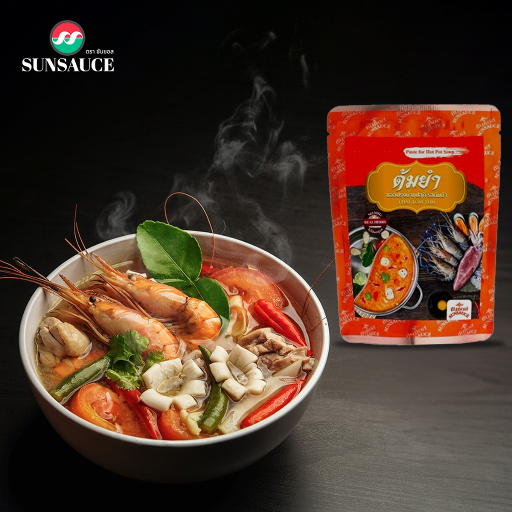 ซอสต้มยำ ซุปสำเร็จรูป ซอสต้มยำปรุงสำเร็จ ซอสปรุงน้ำซุป รสต้มยำ ซอง 100 / 500 กรัม - SUNSAUCE(ซันซอส)