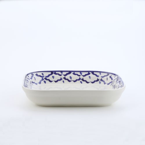 INDRA CERAMIC จานสี่เหลี่ยม ลายสับปะรด เซรามิกเข้าไมโครเวฟได้