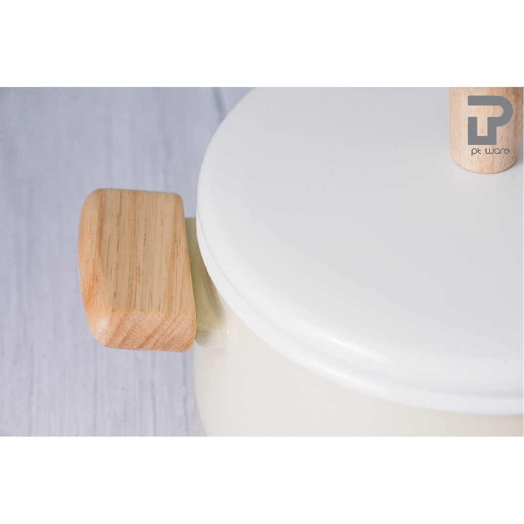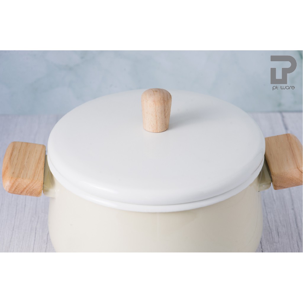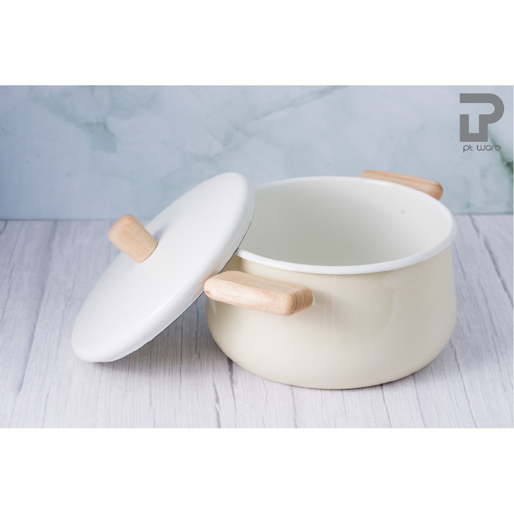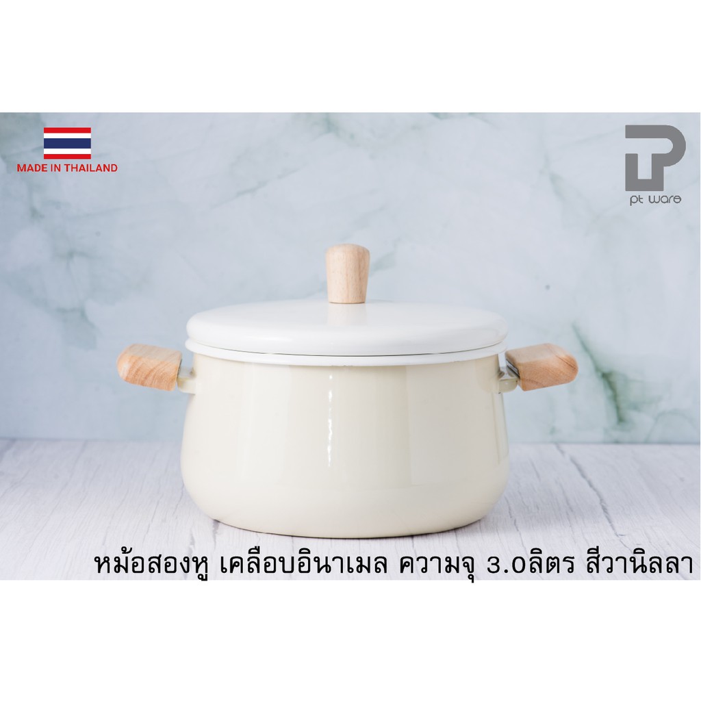 หม้อเคลือบอินาเมล 2 หู หม้อเคลือบ หม้อ หม้อสองหู พร้อมฝา ขนาด3.0ลิตร สีวานิลลา (Vanilla)