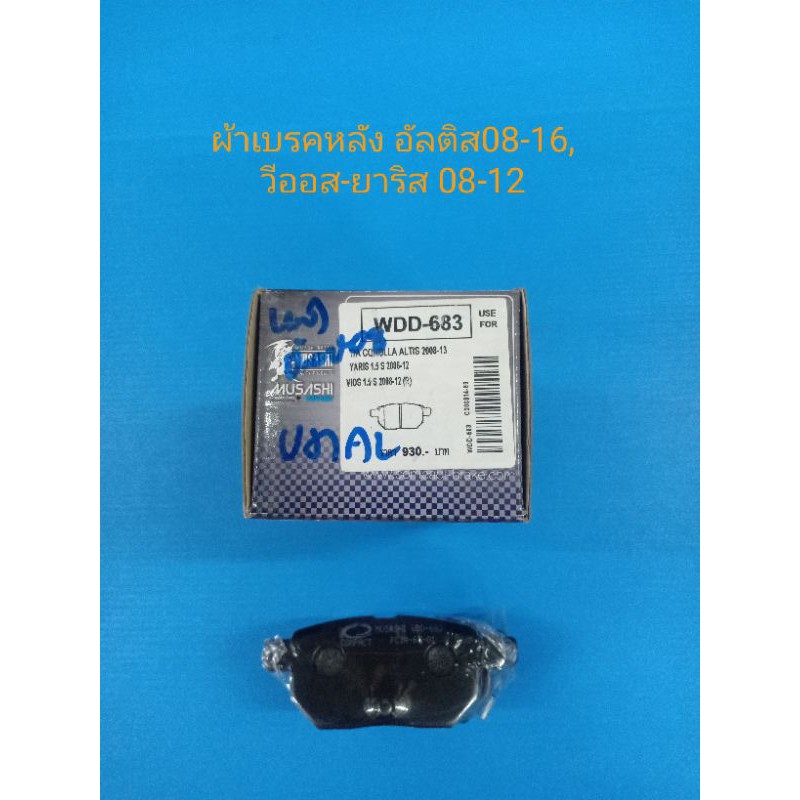 ผ้าเบรคหลัง TOYOTA ALTIS,VIOS อัลติสปี01-06กับ08-16,วีออส03-07กับ08-12,ยาริส08-12