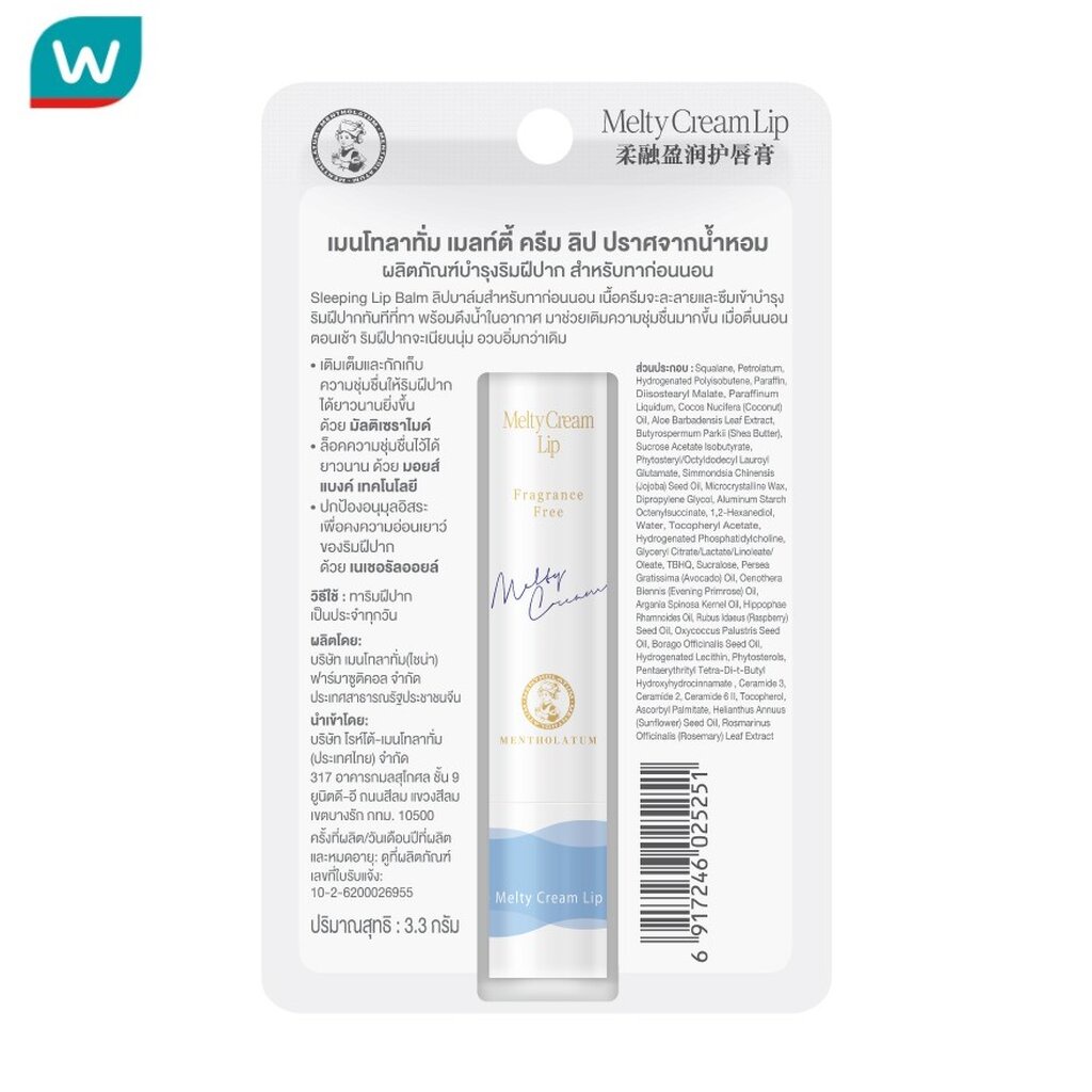 Mentholatum เมนโทลาทั่ม เมลท์ตี้ ครีม ลิป ปราศจากน้ำหอม 3.3 กรัม