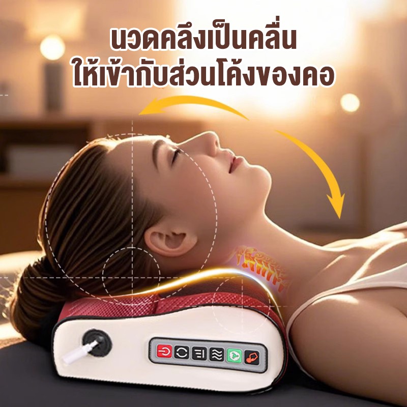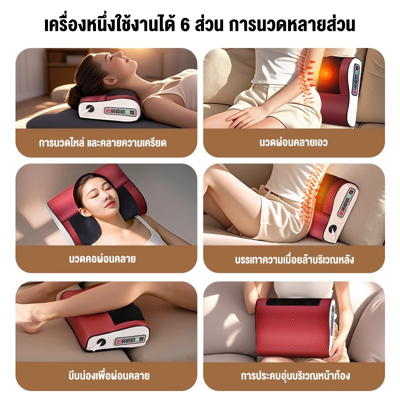 หมอนนวดคอไฟฟ้า หมอนนวดไหล่ หัว ไหล่ เอว สะโพก ส่วนหลัง หมอนนวดบําบัดความร้อน แบบพกพา 6 โหมดอัจฉริยะ
