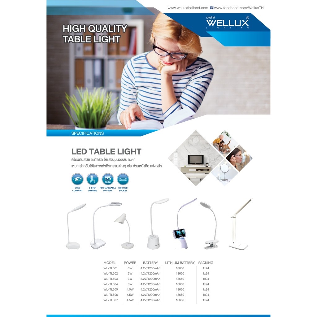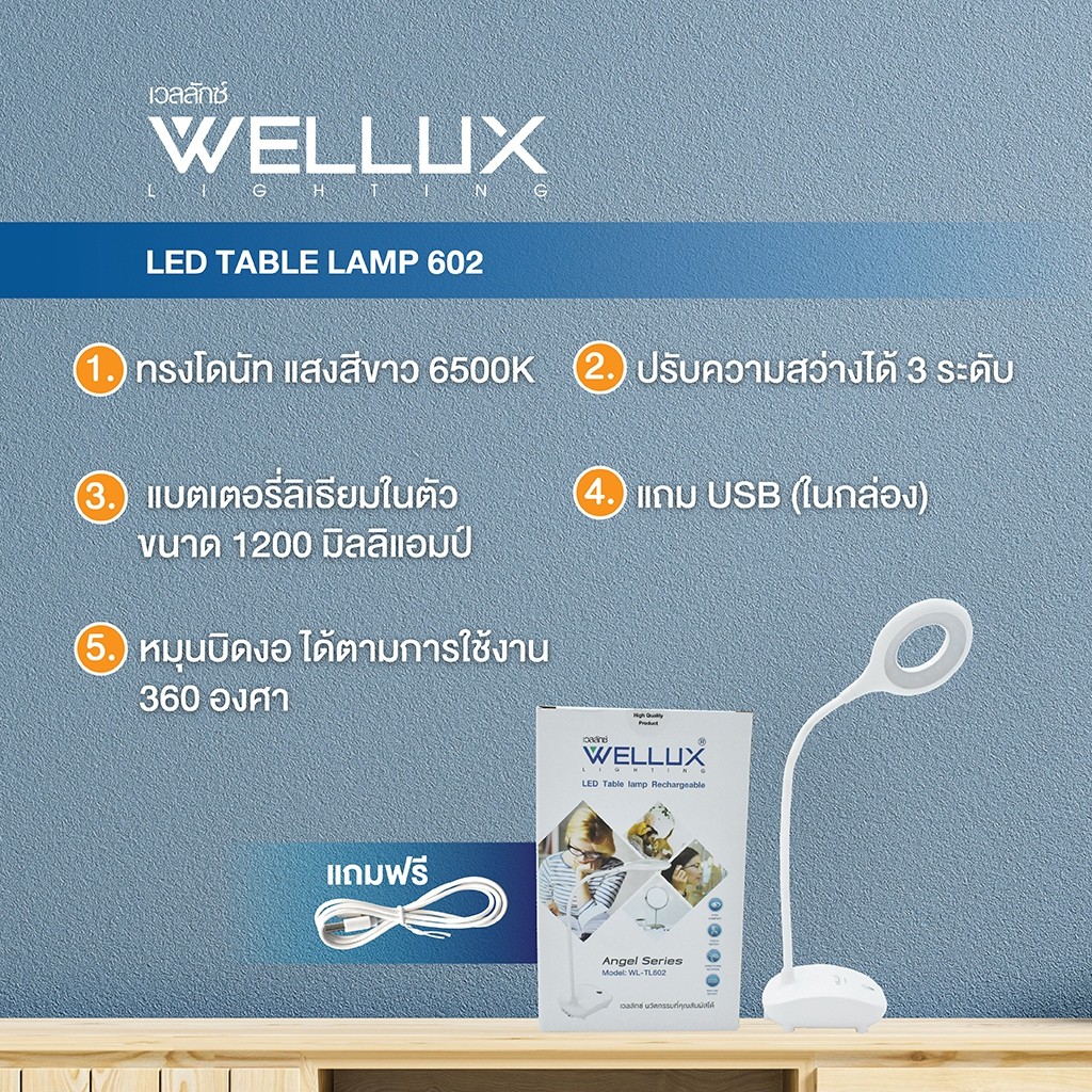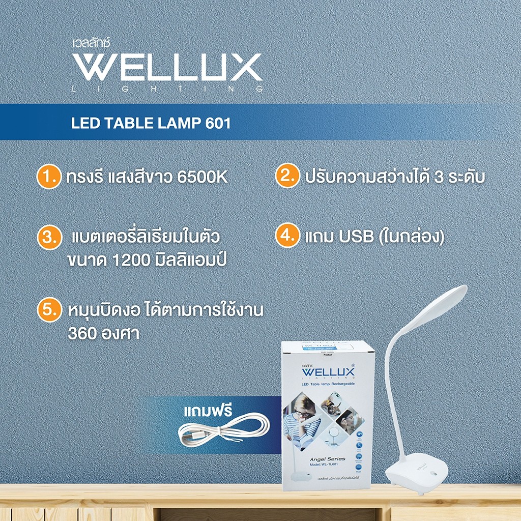 [1แถม1]WELLUX โคมไฟตั้งโต๊ะ โคมไฟอ่านหนังสือ 3W 4.5W ปรับหรี่แสงได้ระบบสัมผัส LED TABLE LAMP