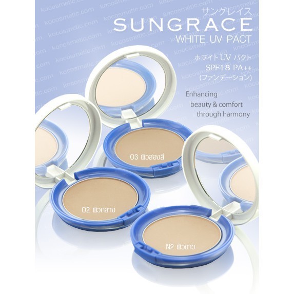 SUNGRACE แป้ง ซันเกรส แป้งพัฟ WHITE UV PACT N SPF18 PA++
